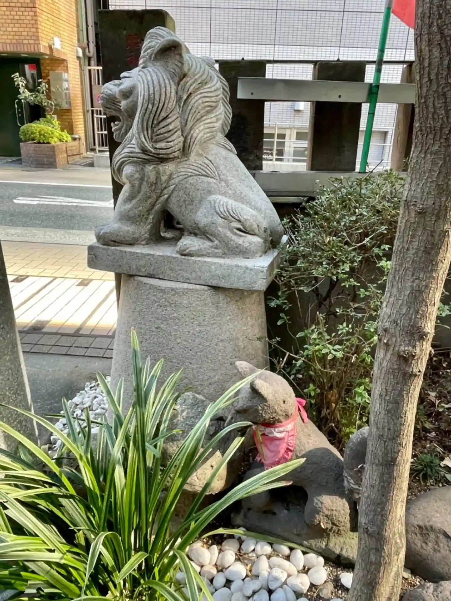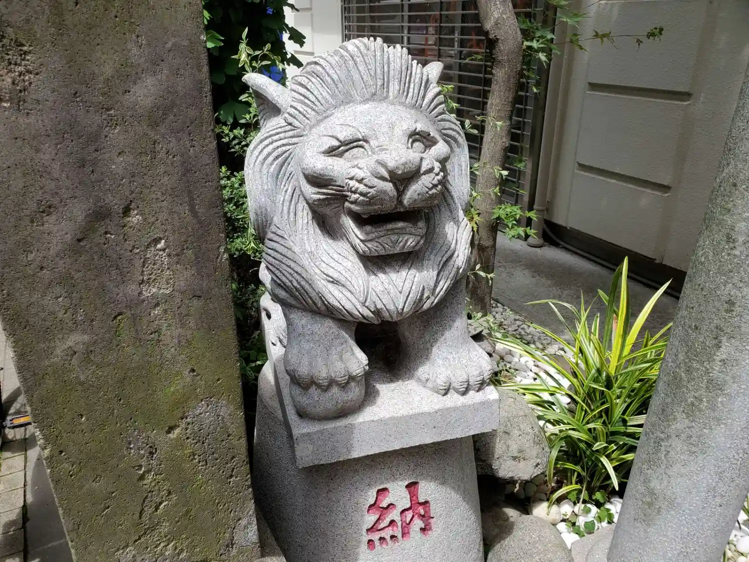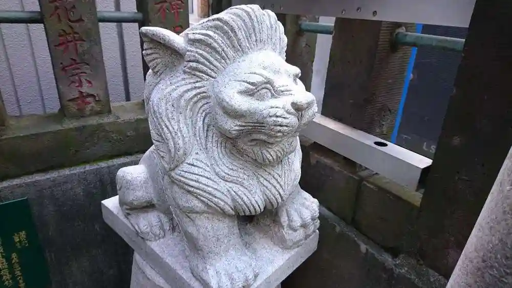 向かって右の鳥居にいた、狛ライオン。