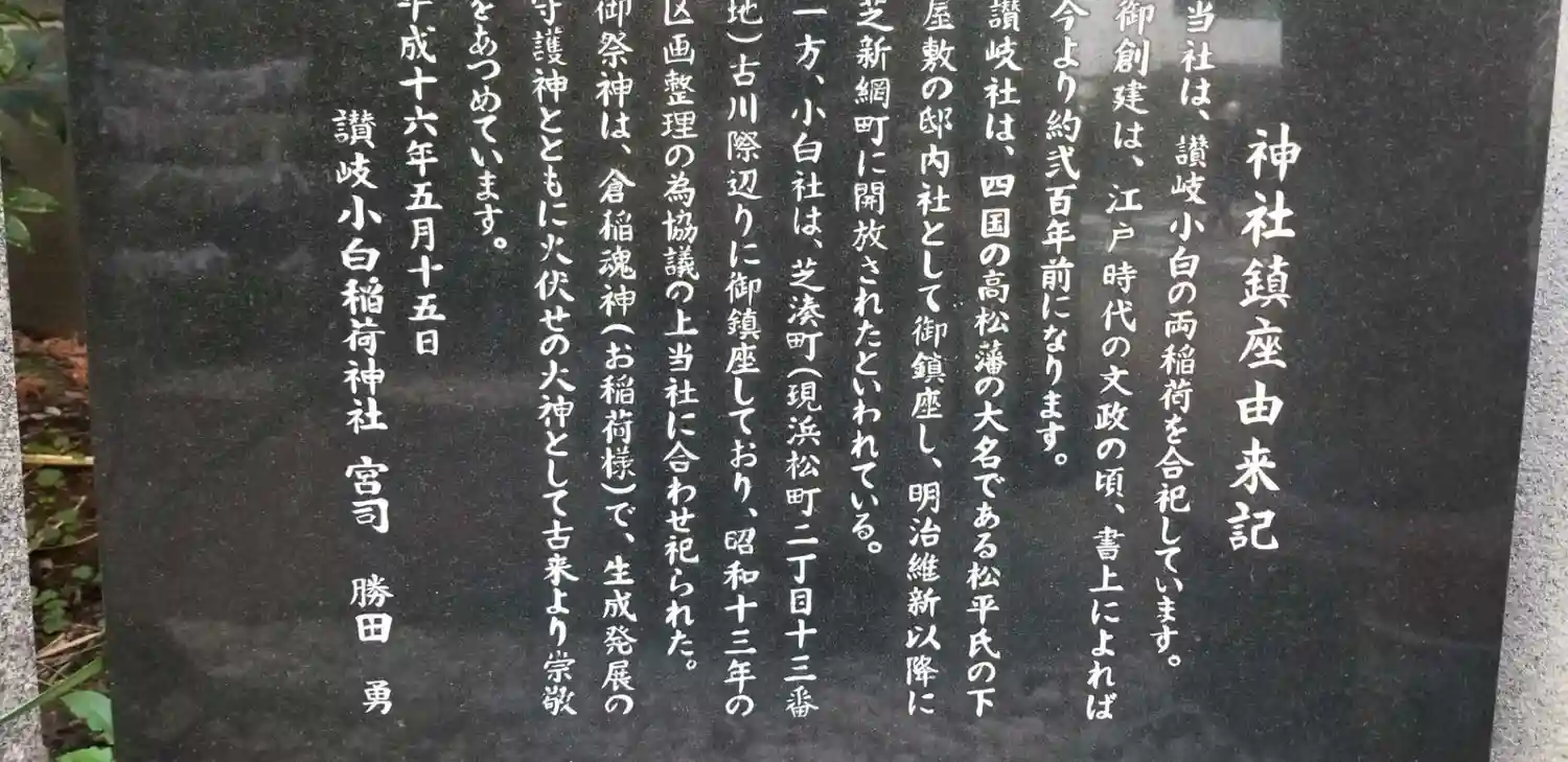 JR山手線・浜松町駅近くの讃岐小白稲荷神社にお参りしました。「神社鎮座由来記」によると、四国の高…