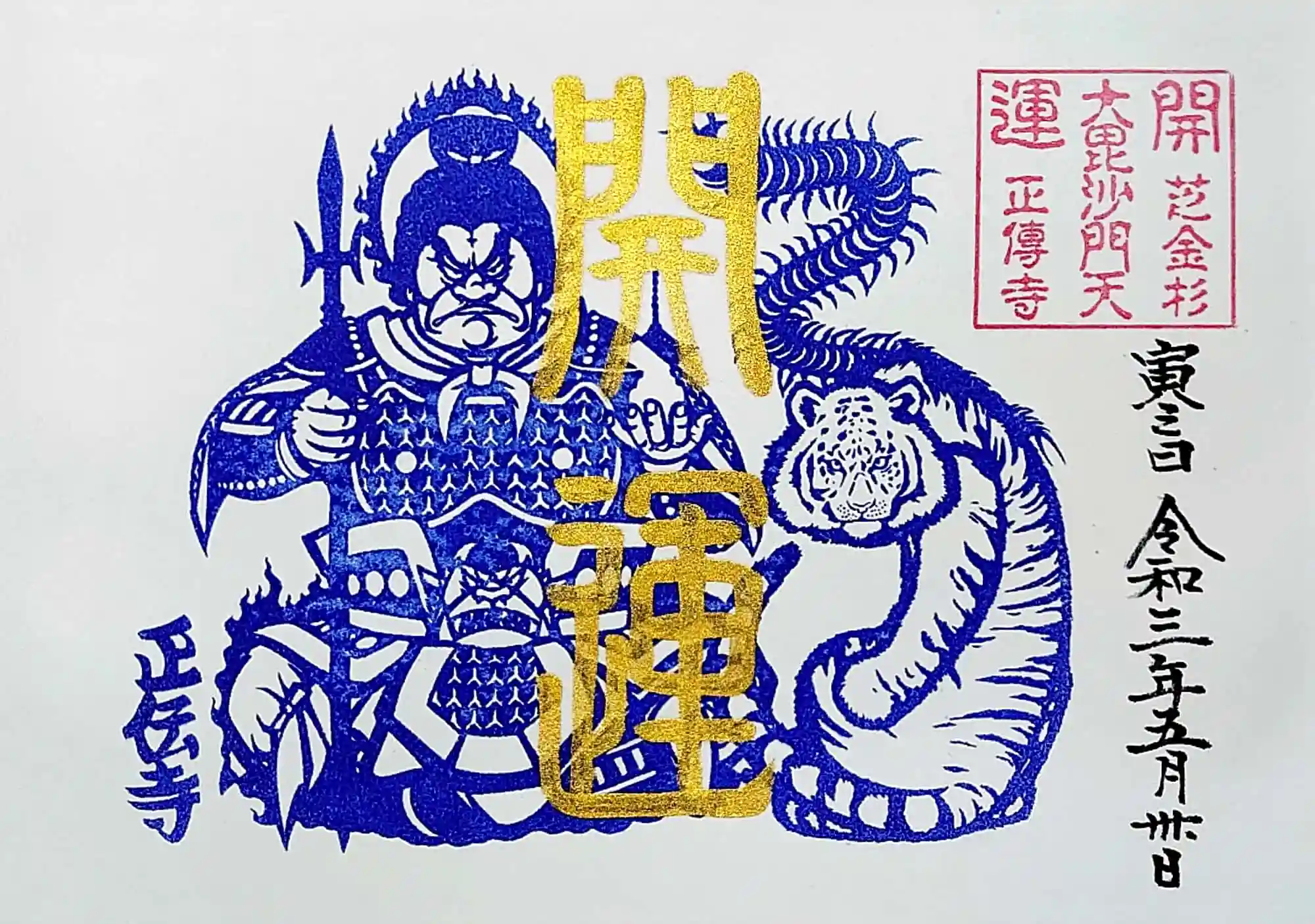 毘沙門天&寅の印が赤から藍色に変わりました。