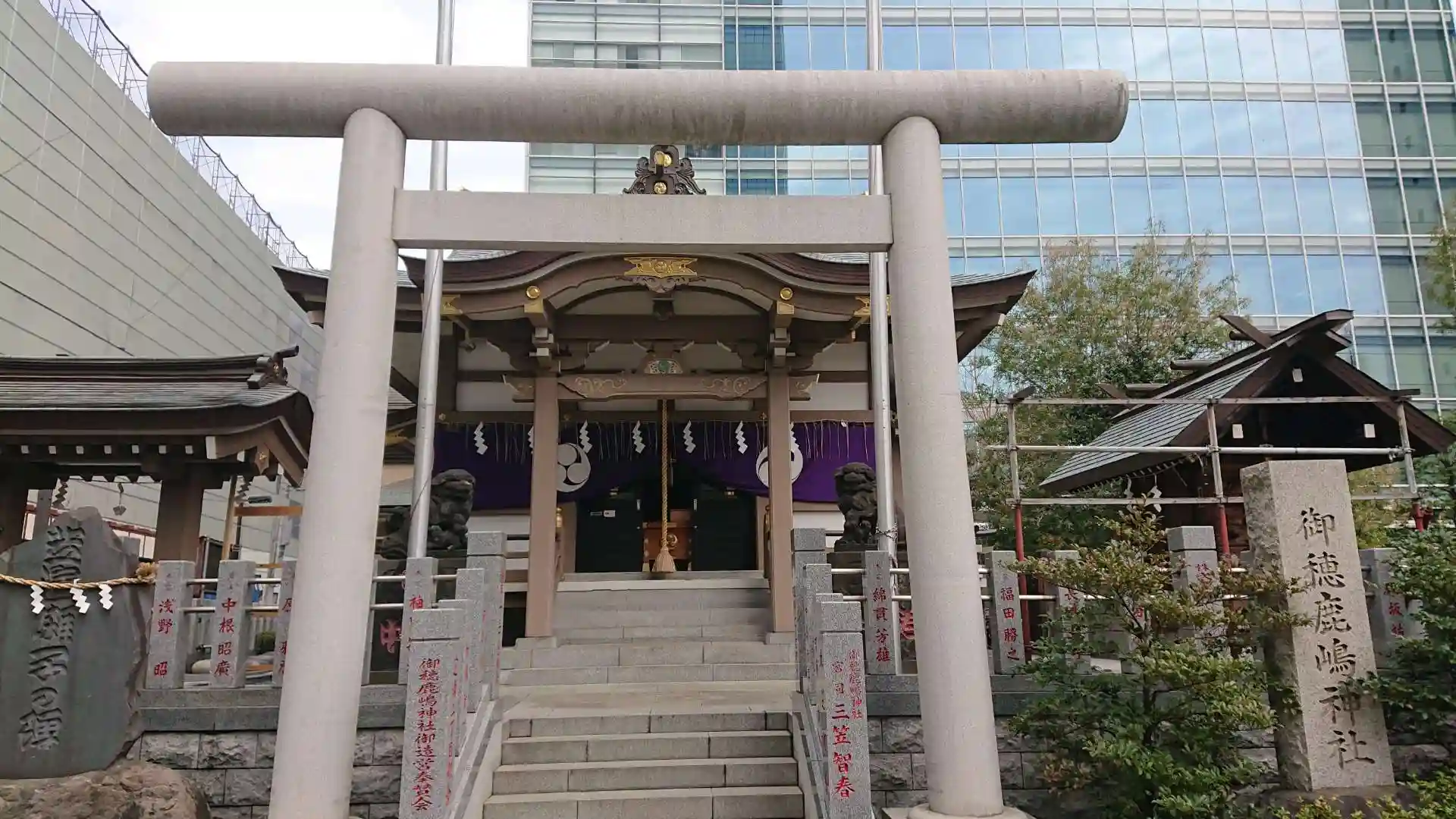 今日は三田、高輪辺りをお詣りです。1社目はJR田町駅近くの神社です。