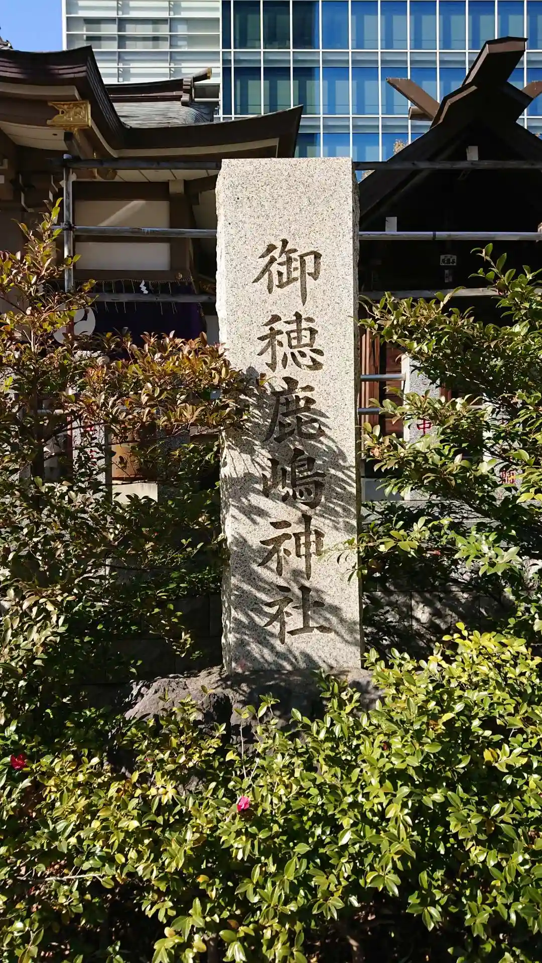 こちらも都会の中に鎮座していました。御穂神社と鹿嶋神社が合祀されています。拝殿の中の扁額はそれぞれ…