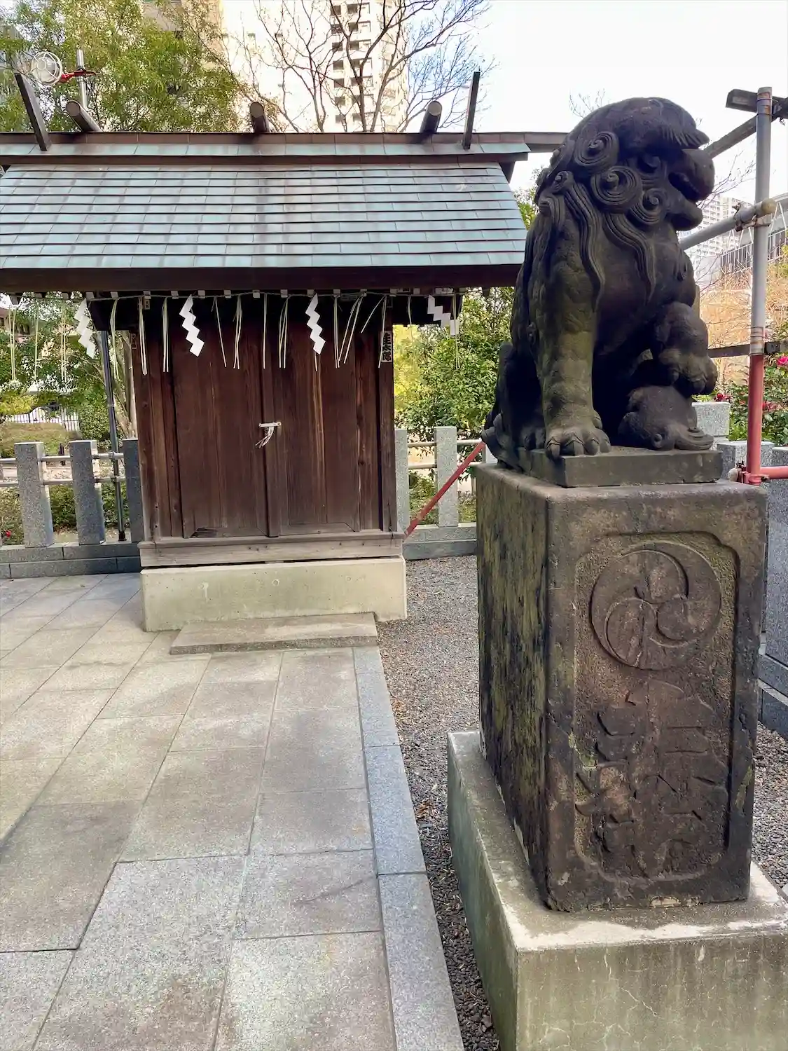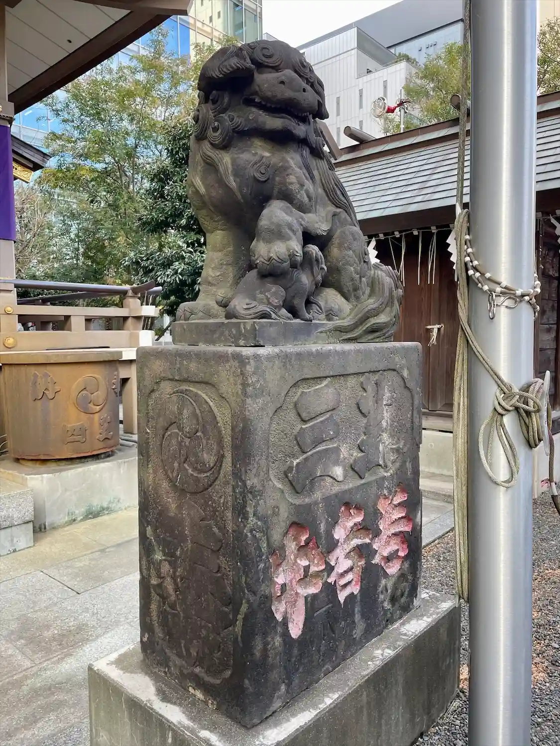 神社の裏手にも狛犬さんがいました。