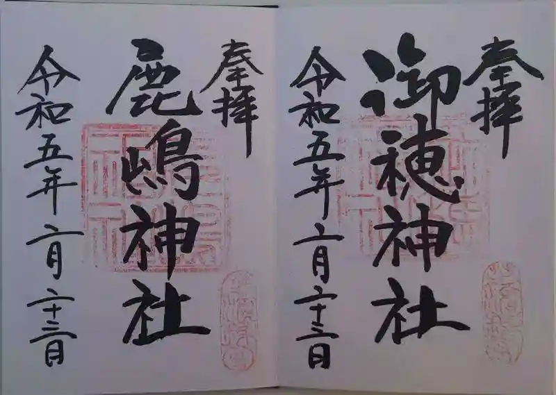 この裏手に社務所があり、「御穂神社」と「鹿嶋神社」のそれぞれの御朱印を拝受しました。