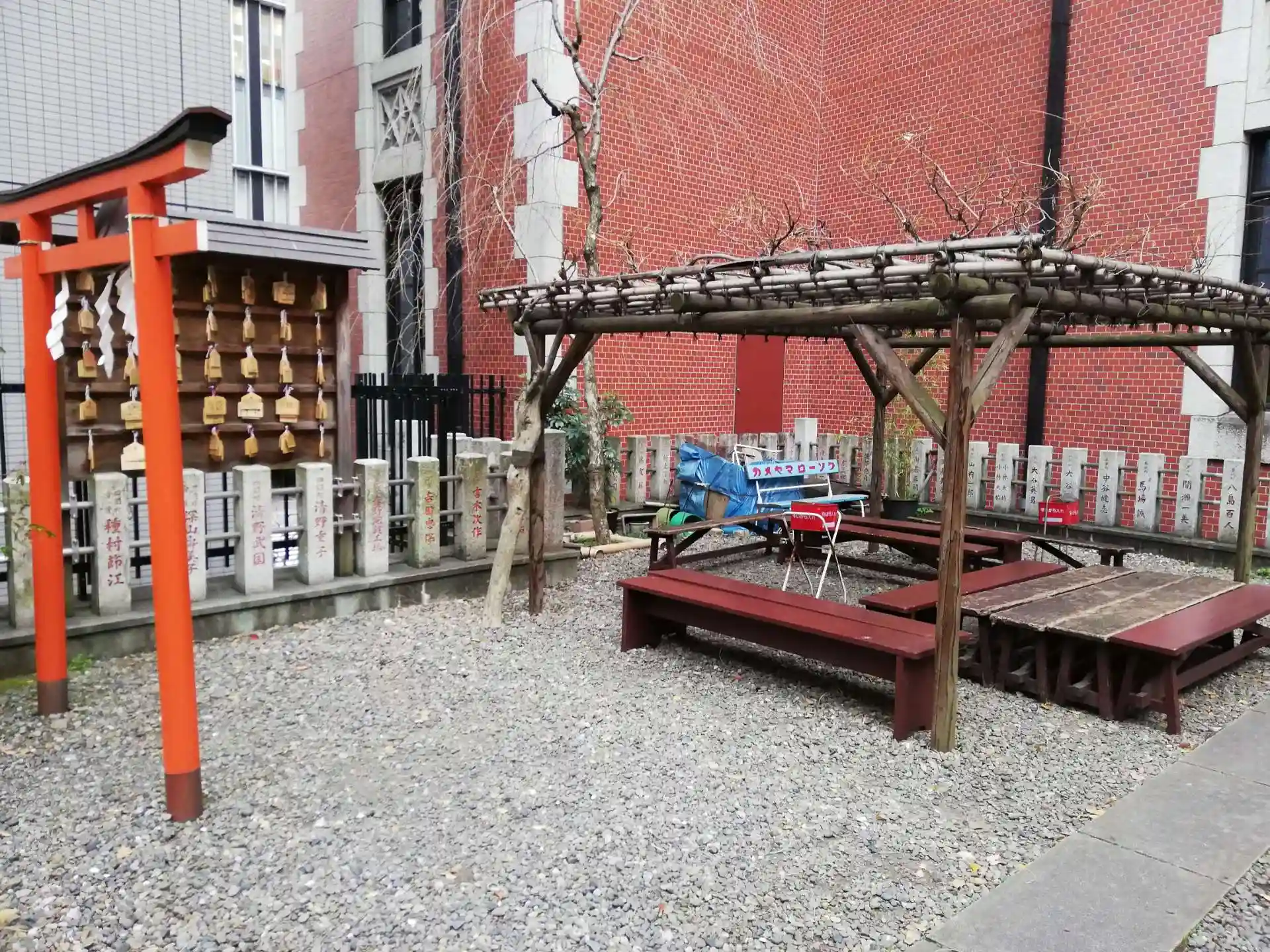 春日神社の境内にある福徳稲荷。レンガの壁は慶應大学の校舎です。ここまでぴったり隣接しているとは…参拝して気付くことは多いです。