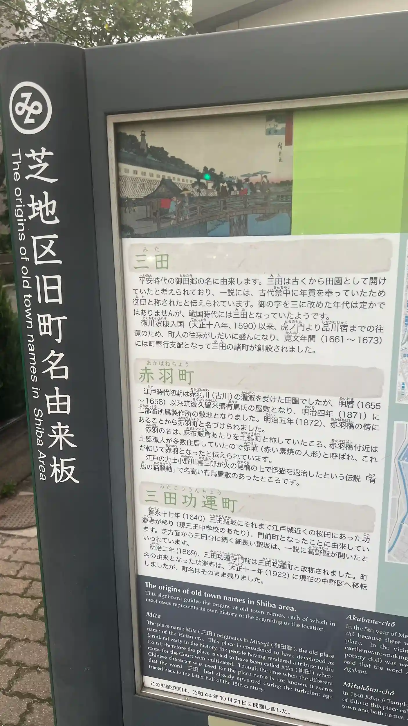 この文章作成中に赤羽の由来を発見したので加えておきます。三田二丁目児童遊園にて。赤羽は消滅した町名だっだですね。