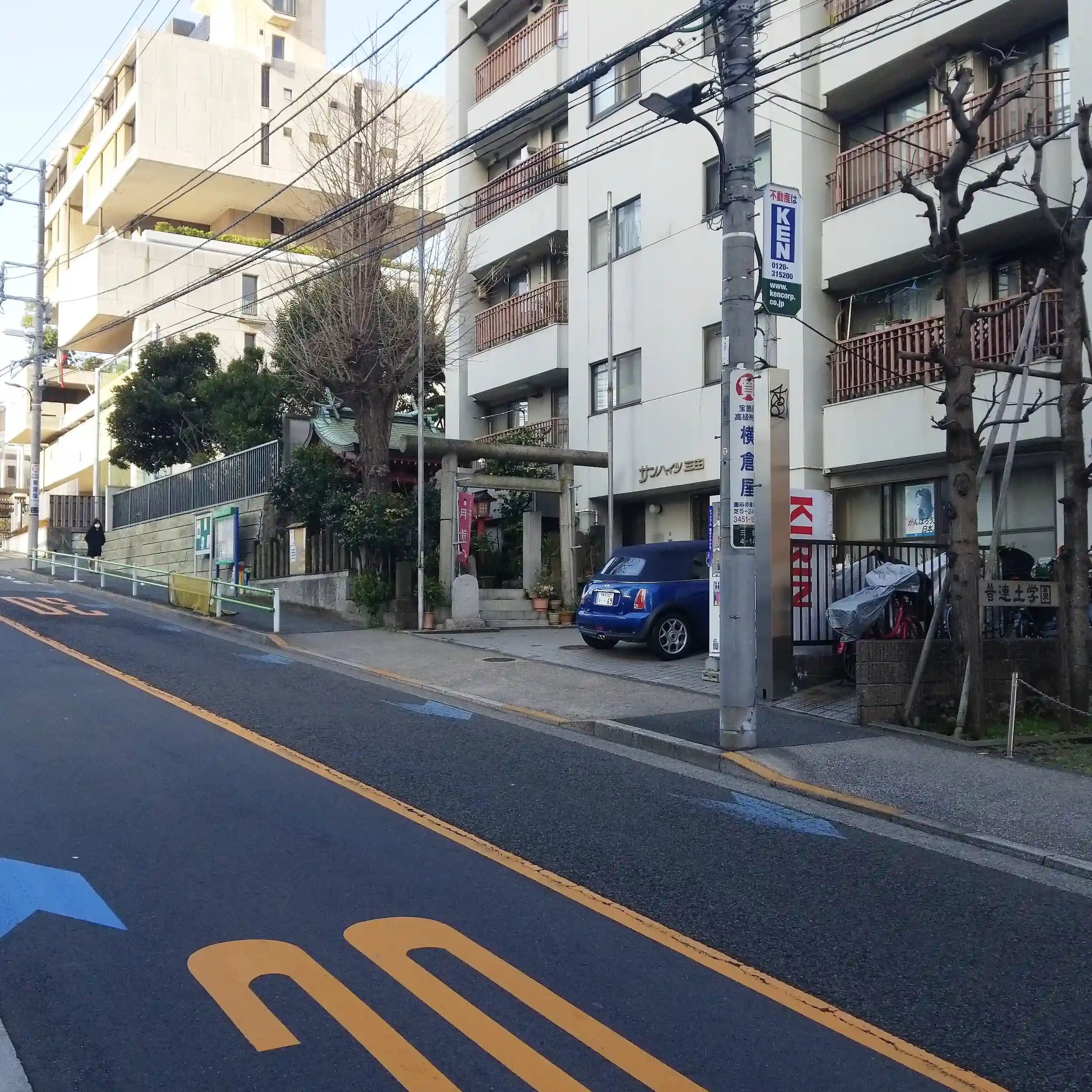 出先で歩いている途中、マンションの敷地内にある神社を見かけたのでお詣りしてきました。