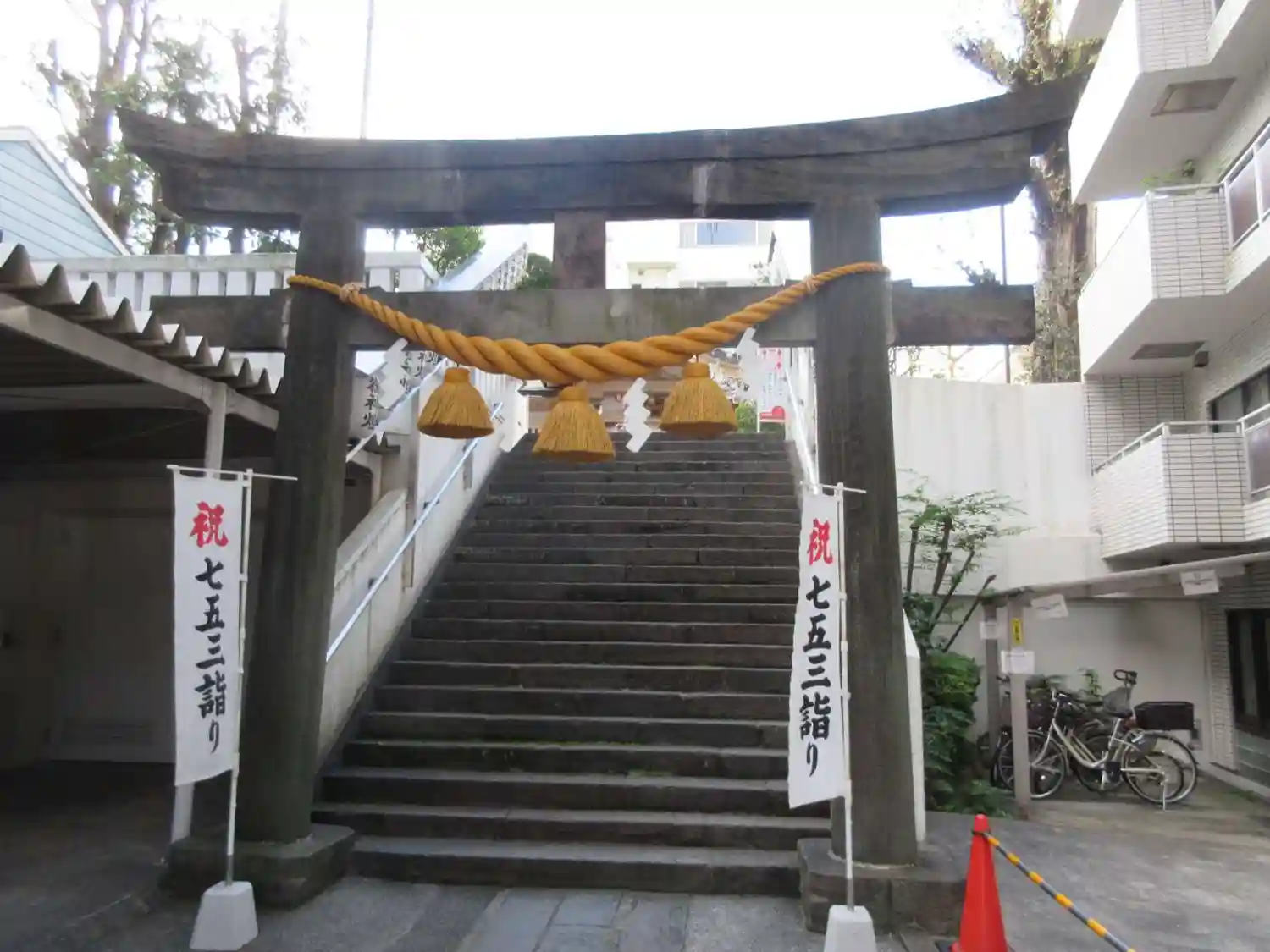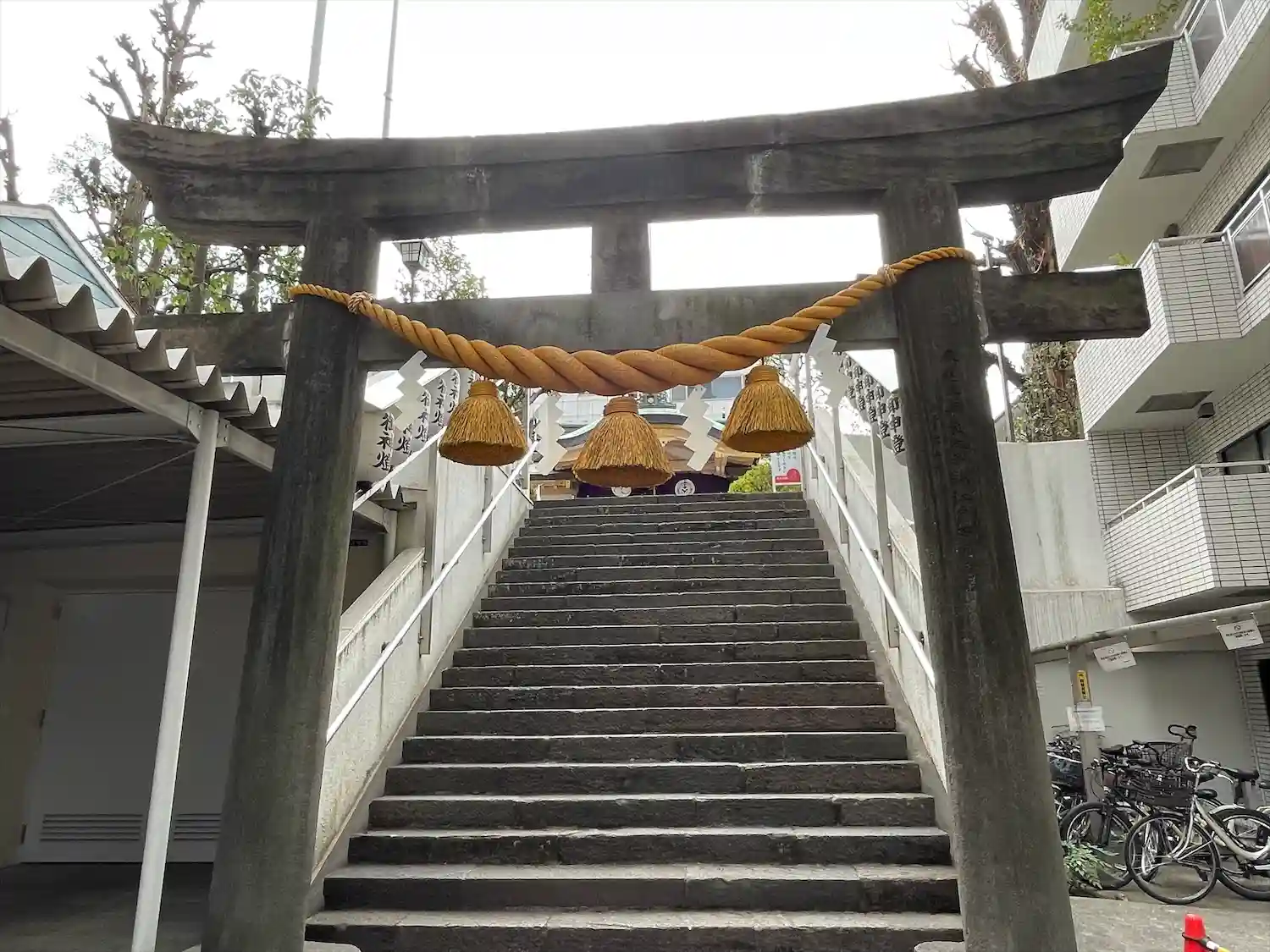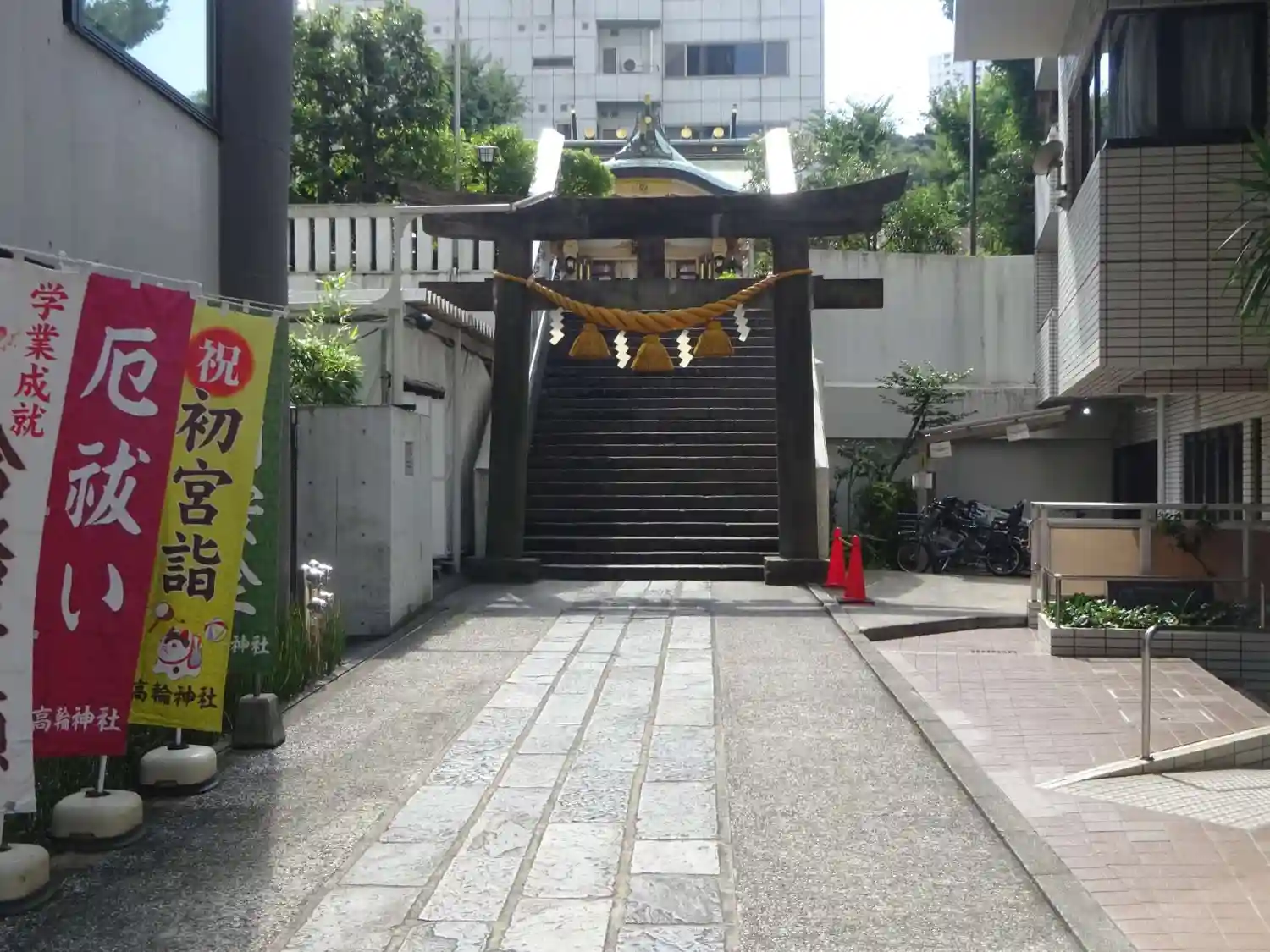 高輪神社〜鳥居・階段上に神社がある