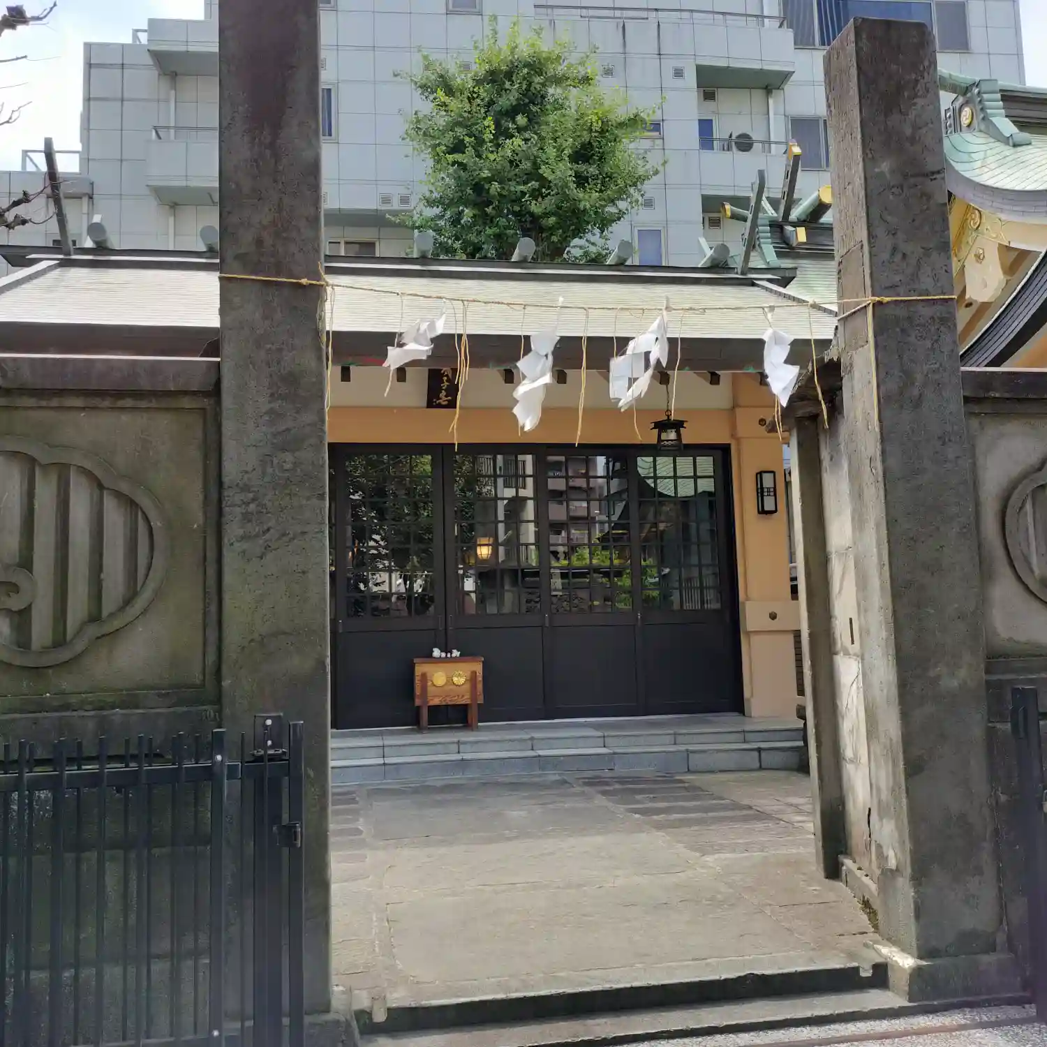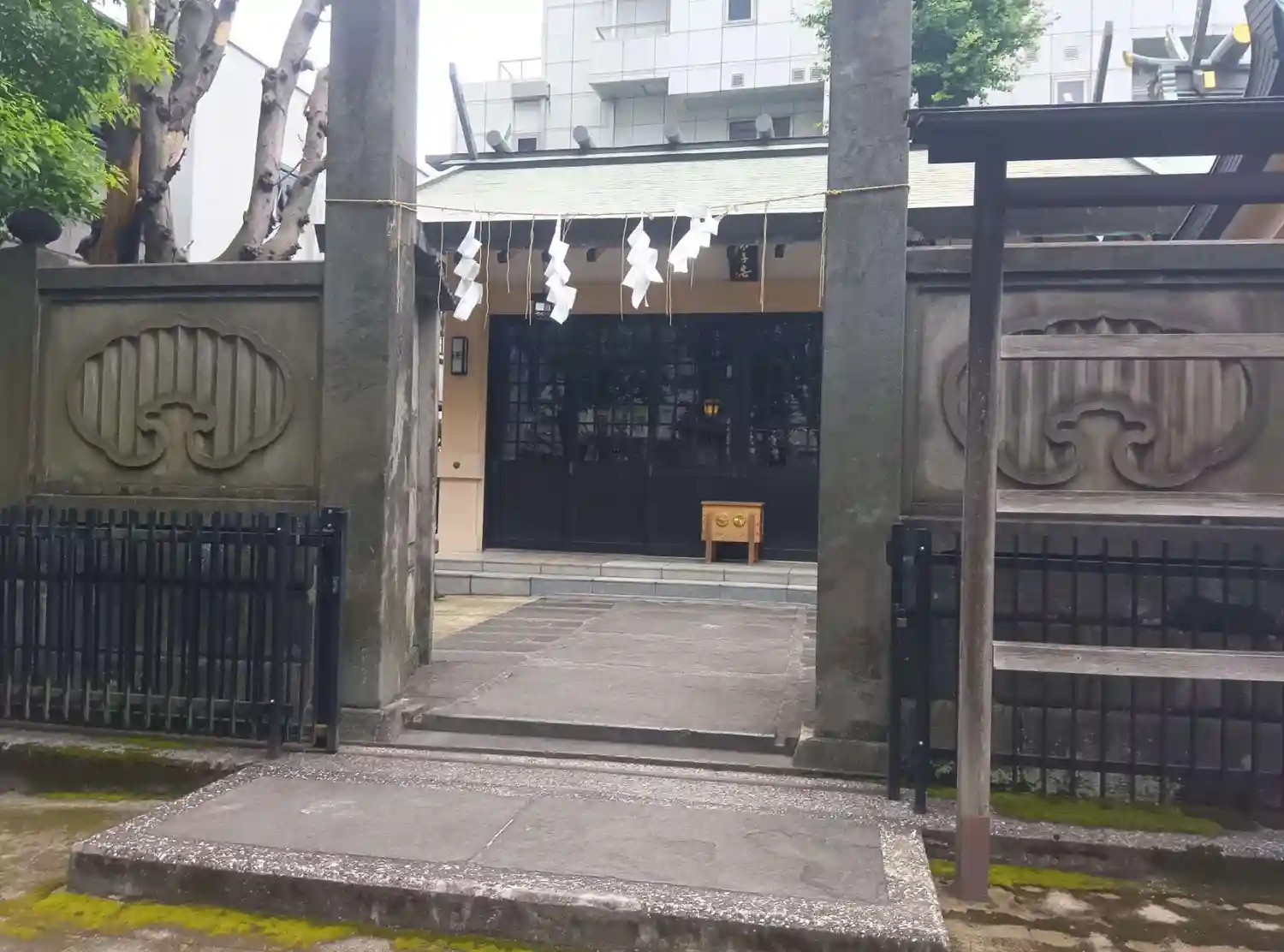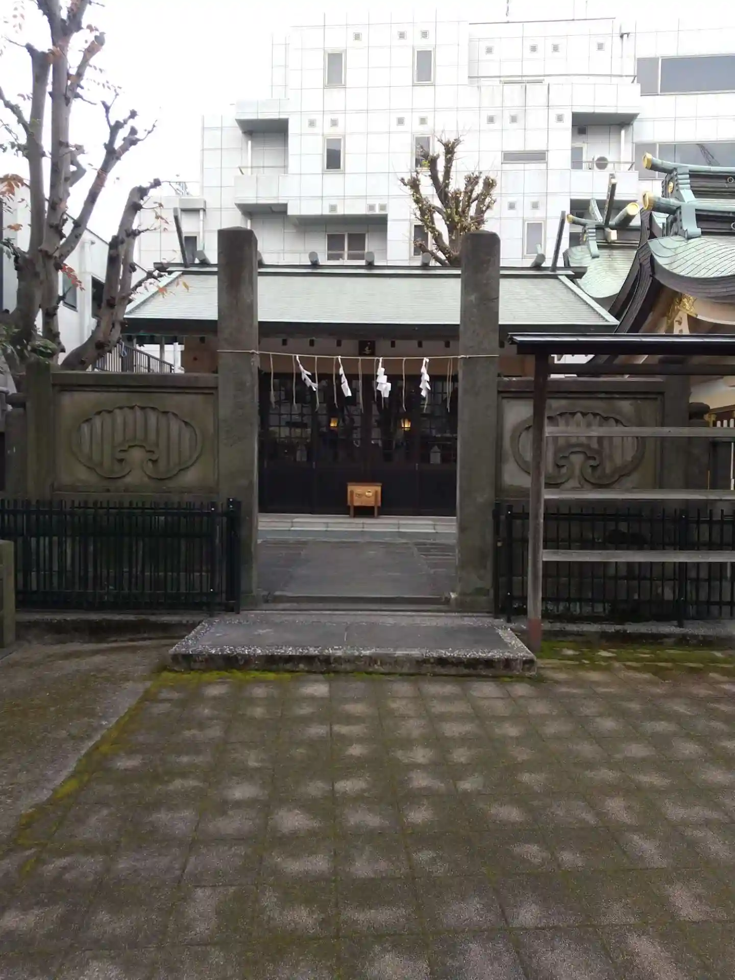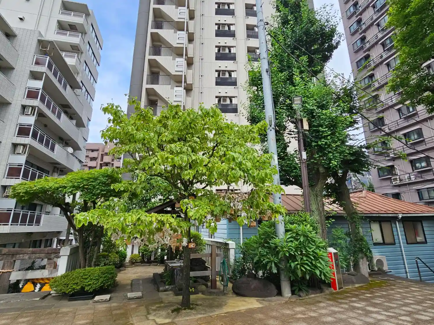 ビル群に囲まれた境内
