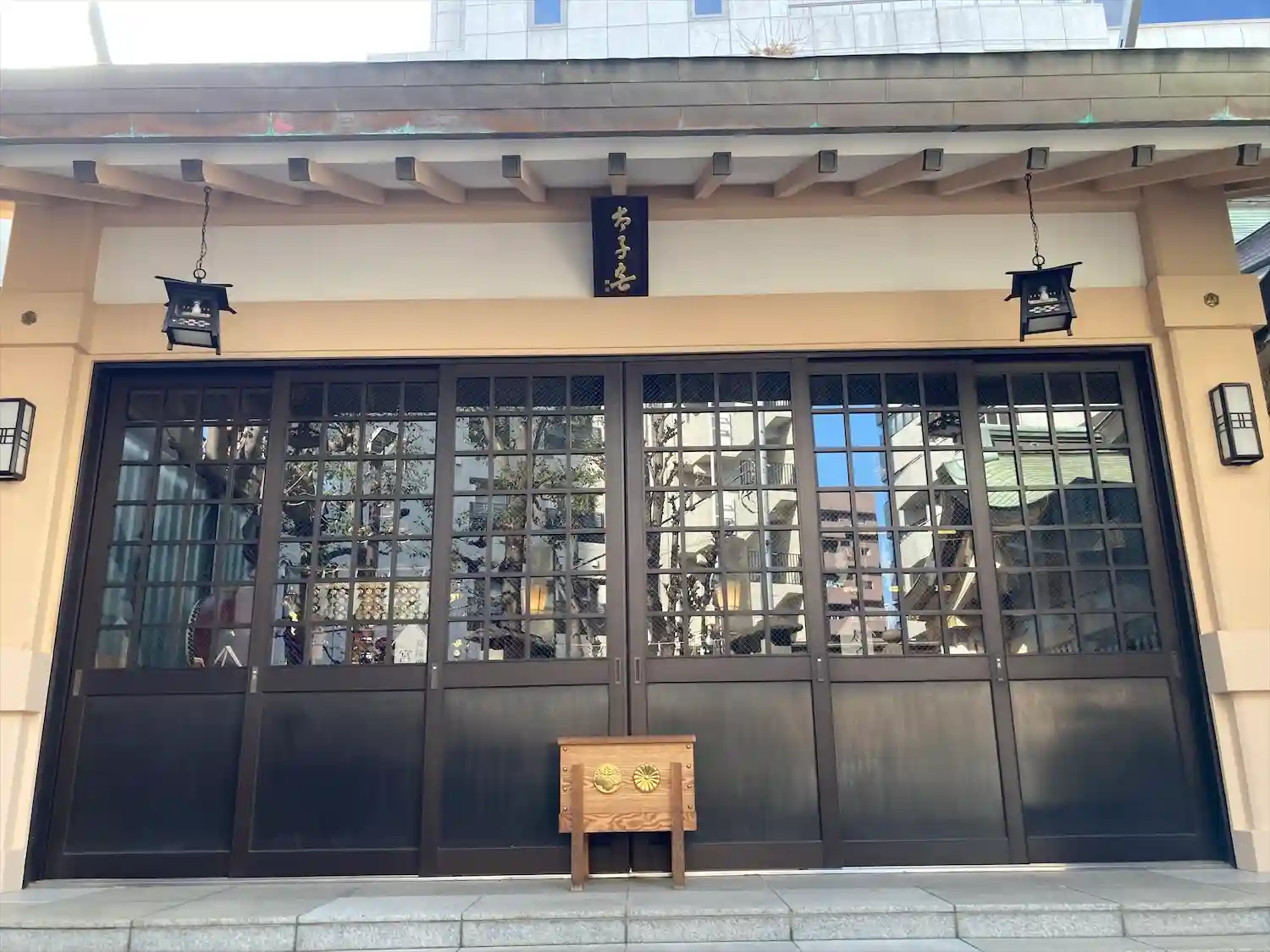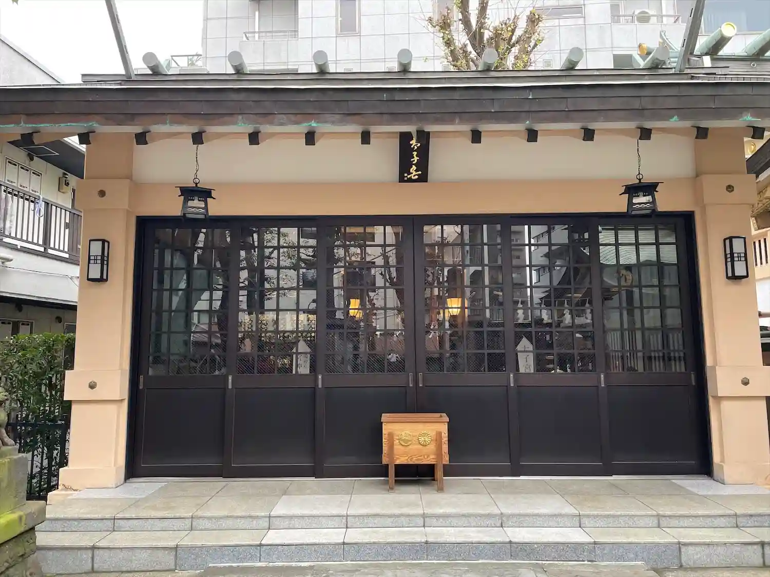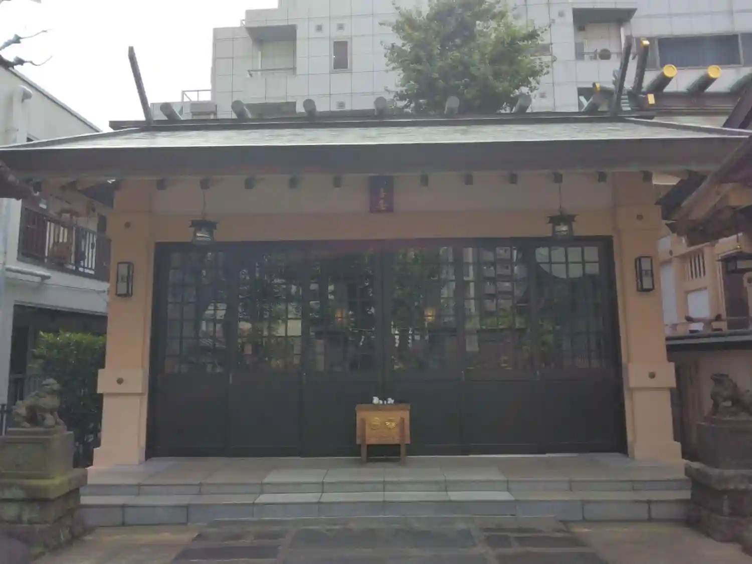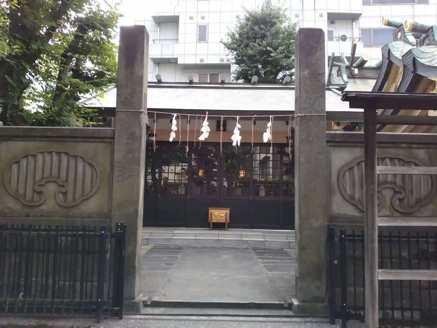 ビル群に囲まれた境内
