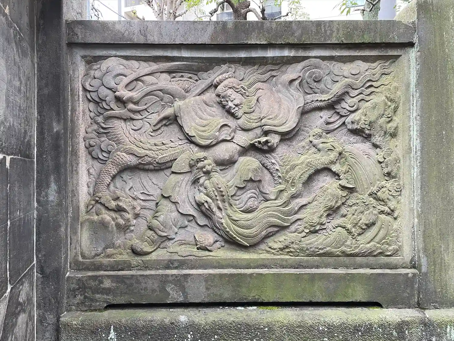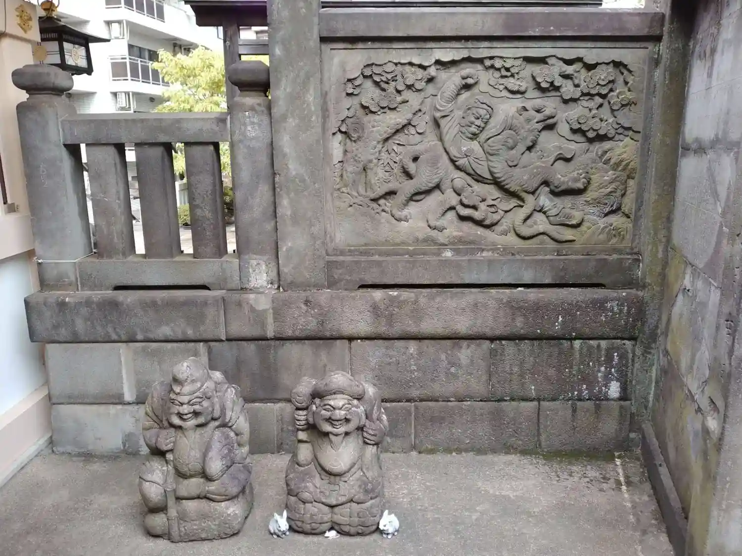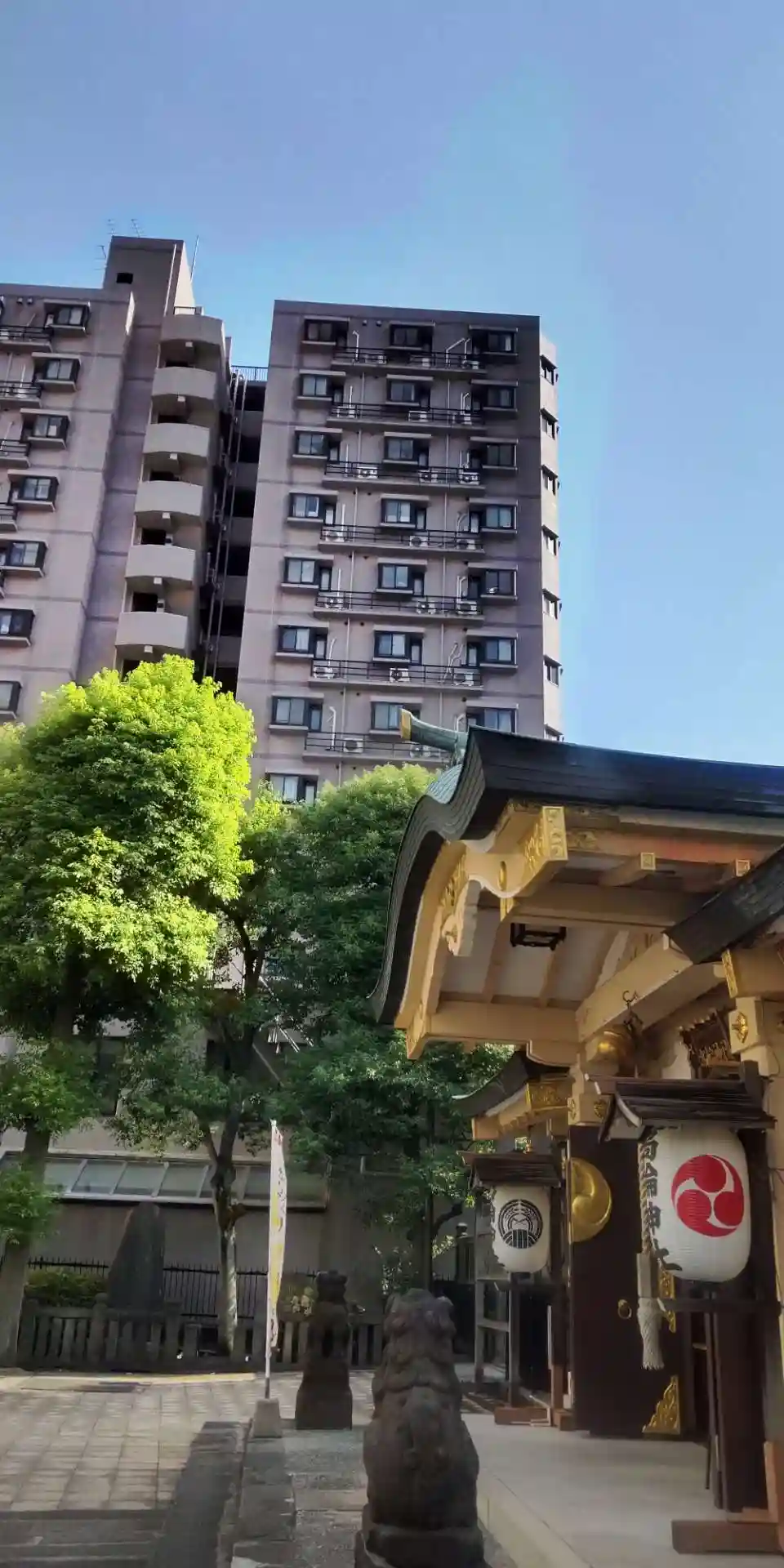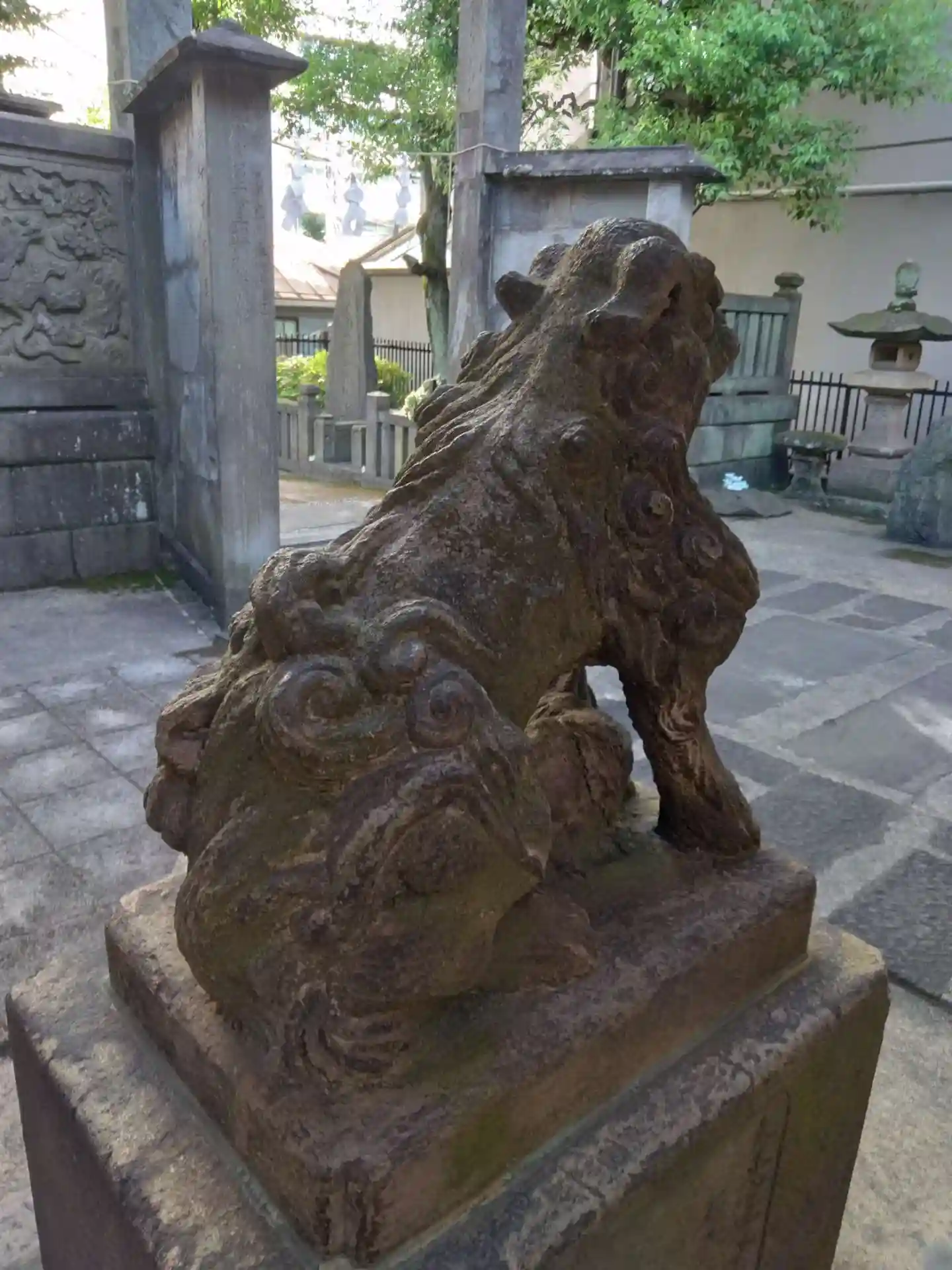 ビルとマンションに囲まれた一角にありました。狛犬や石像に歴史を感じました。