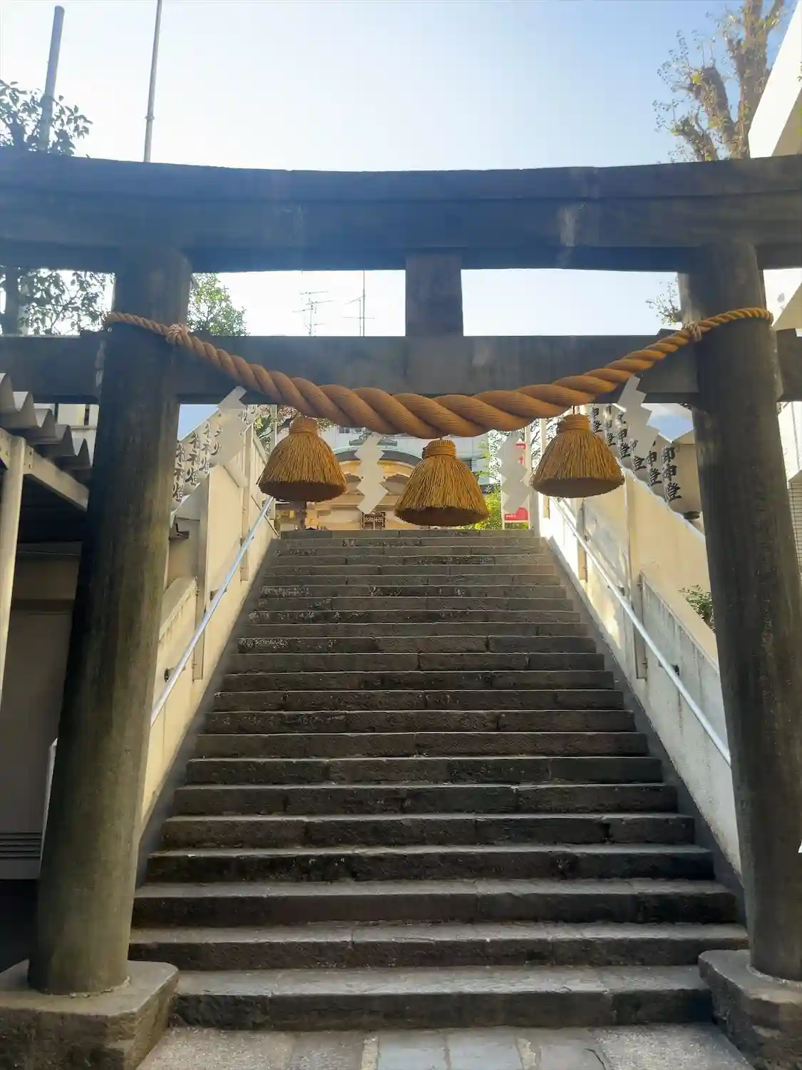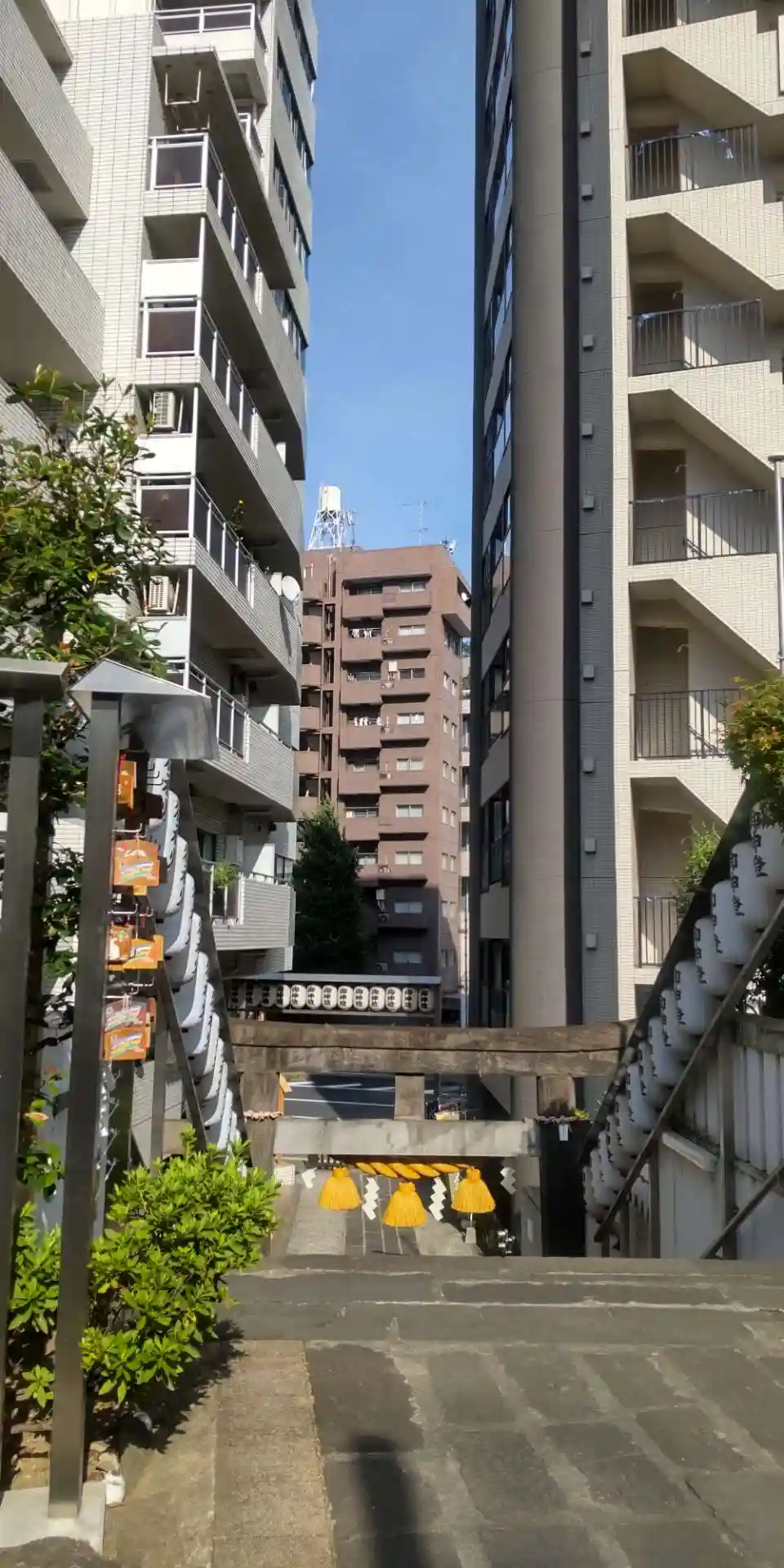 ビルの谷間の鳥居をくぐり階段を登りお参り。