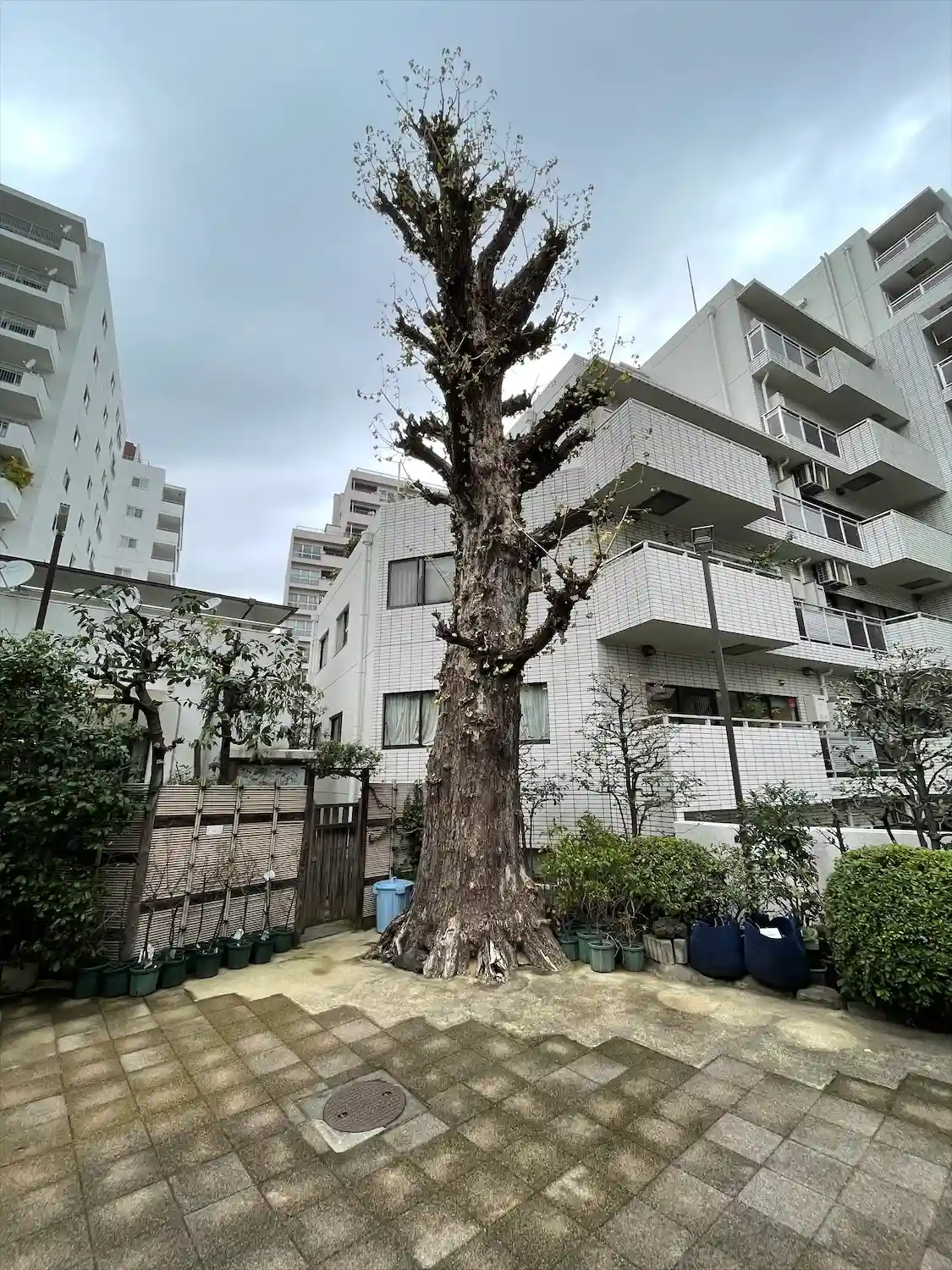 見渡すと周りはマンション。結構、都心はこういう景色はあったりします…