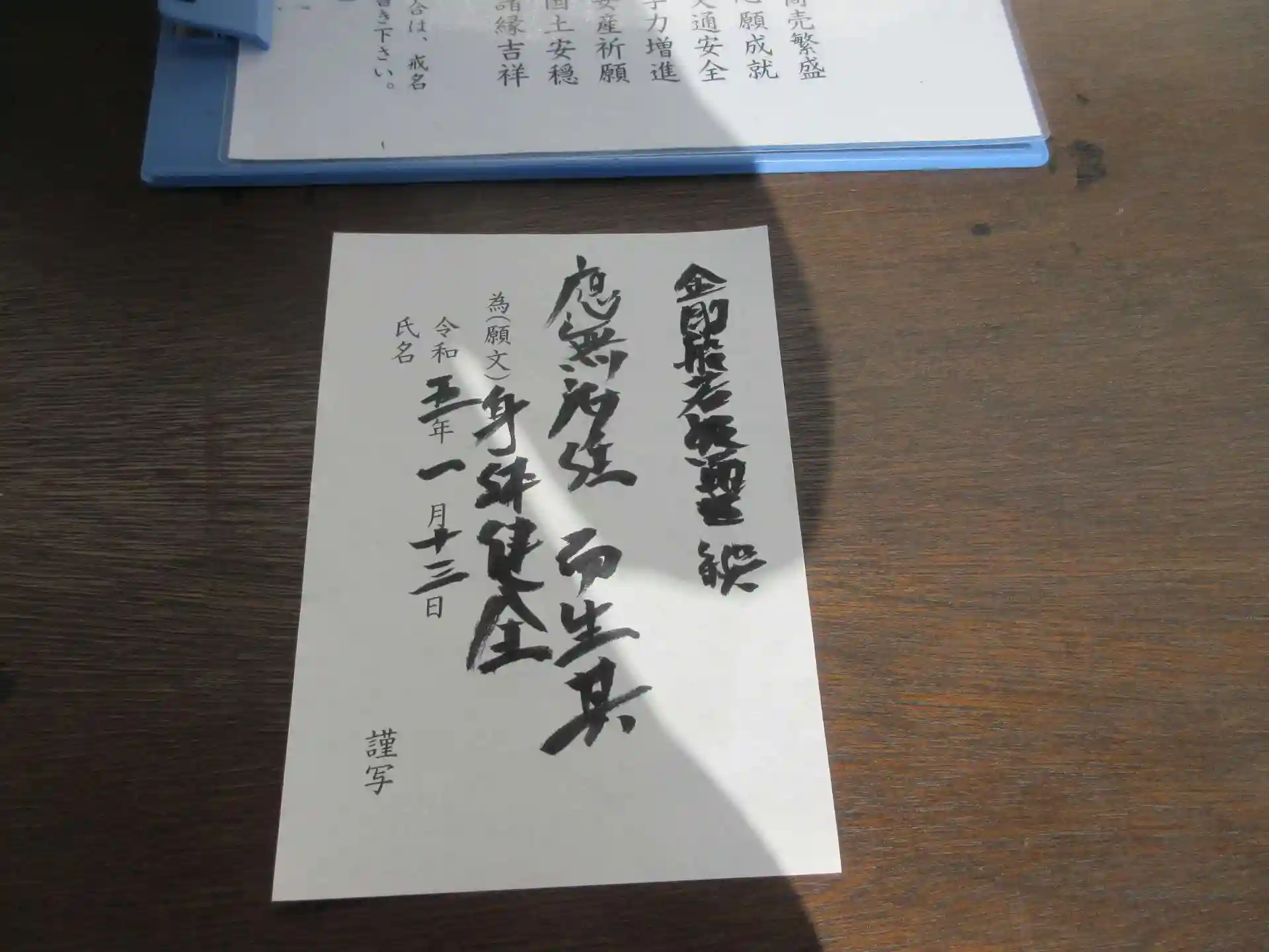 さてさて、御朱印を待つ間に、紙と筆を渡され、
