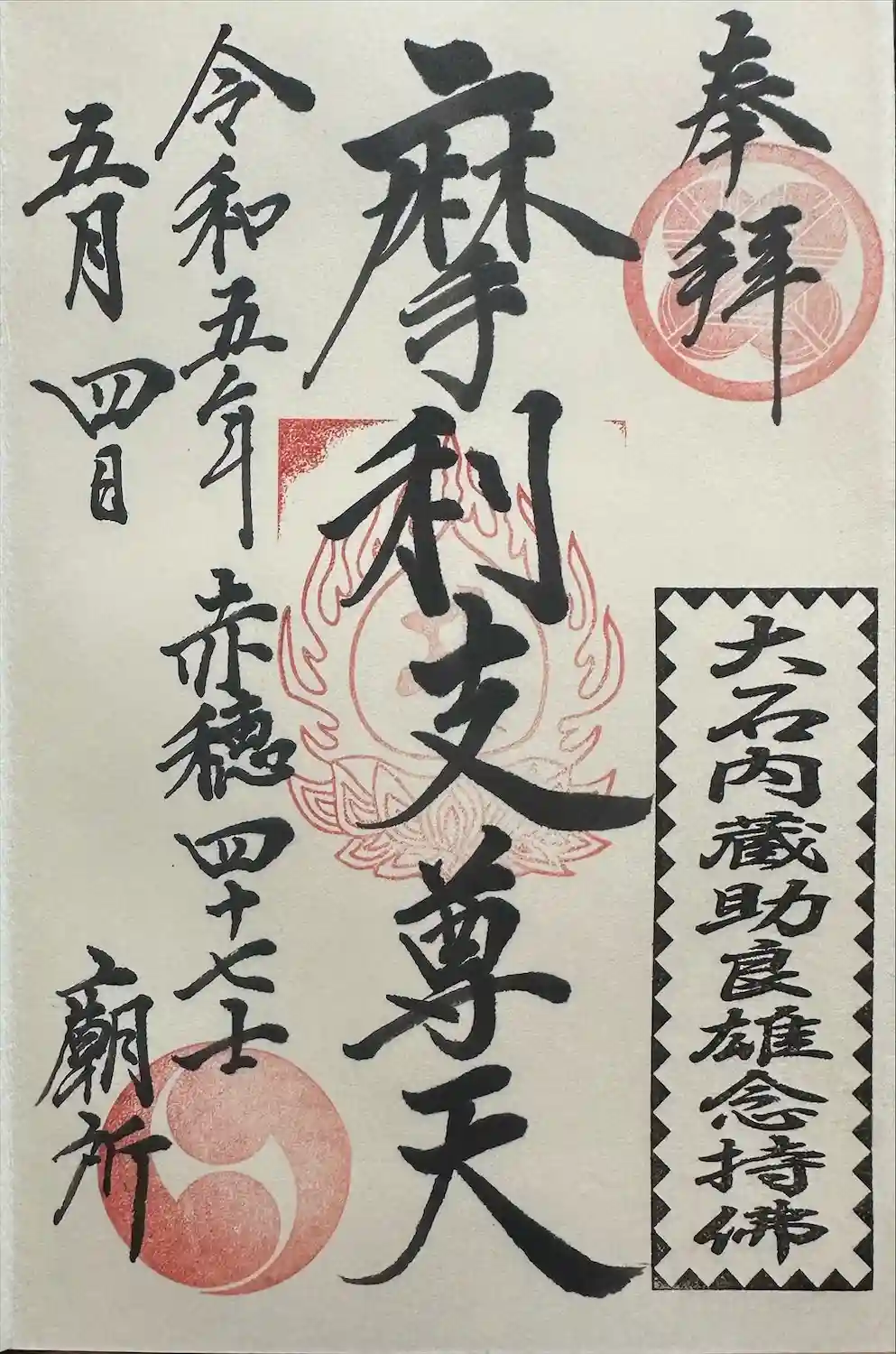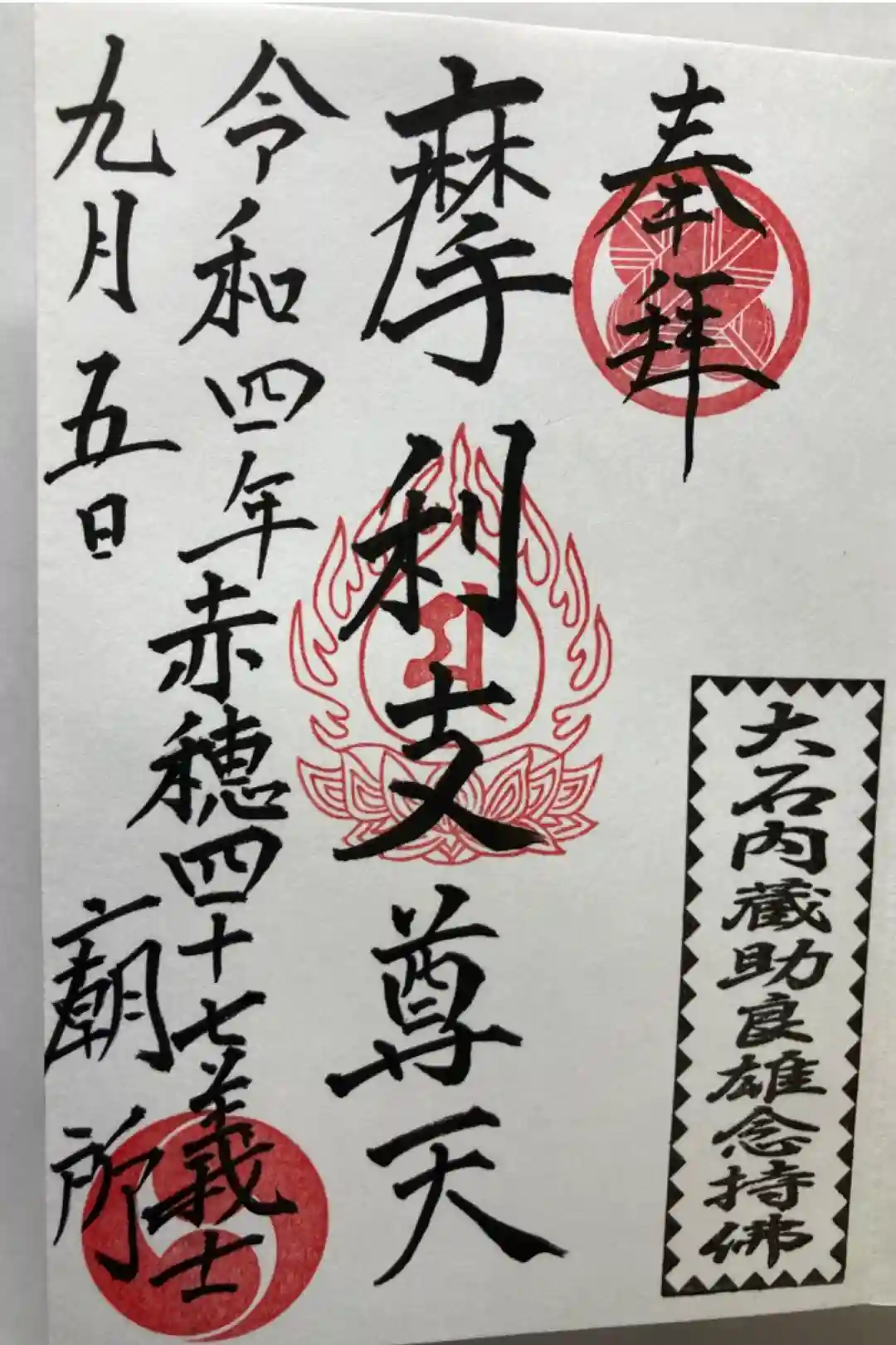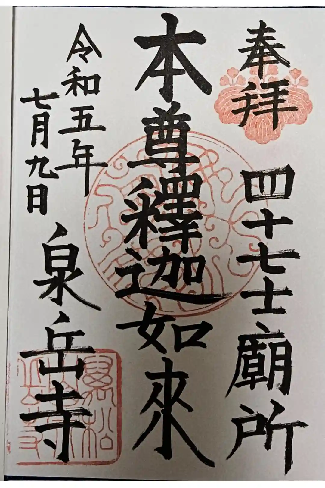 御本尊の御朱印。