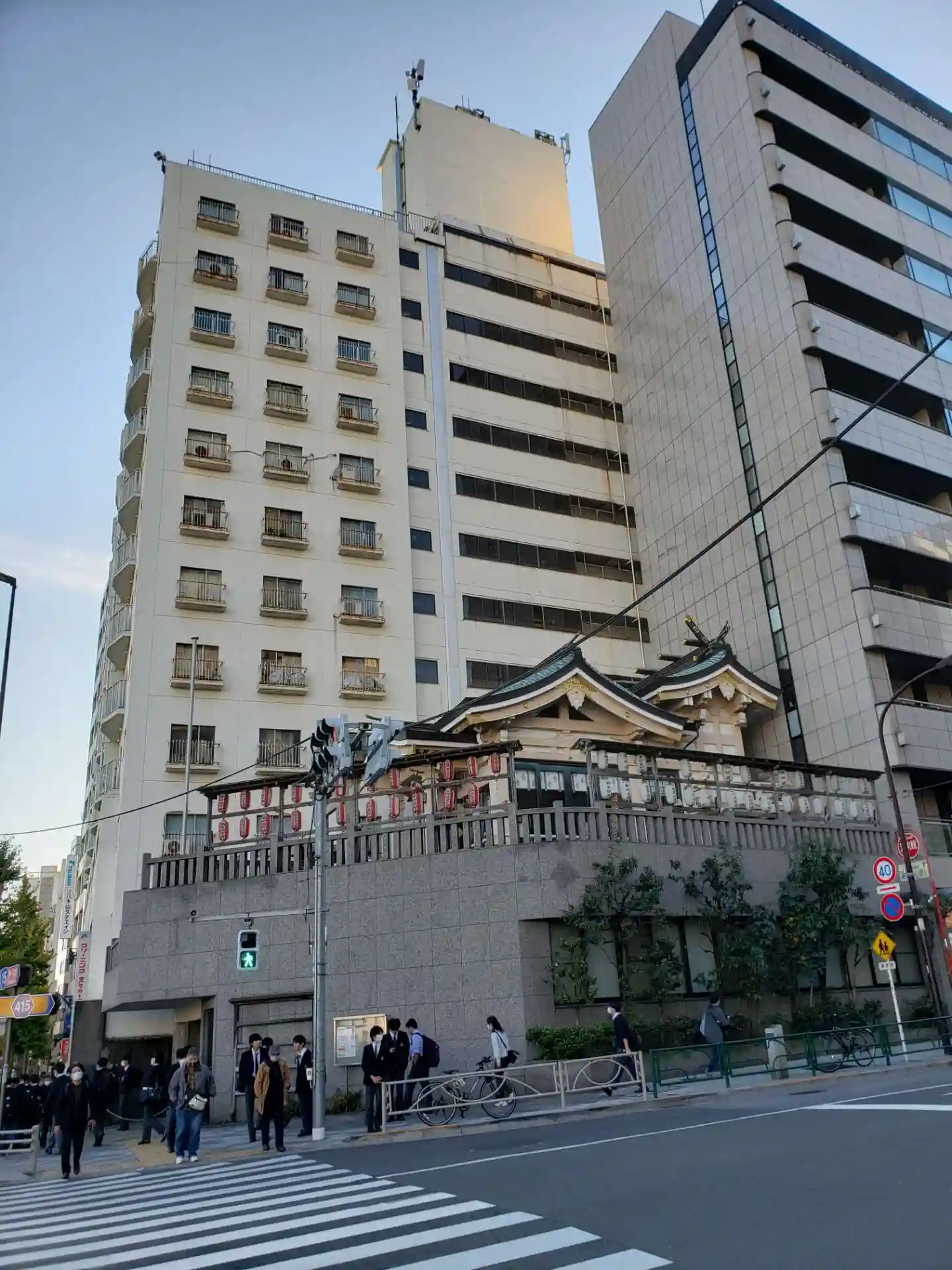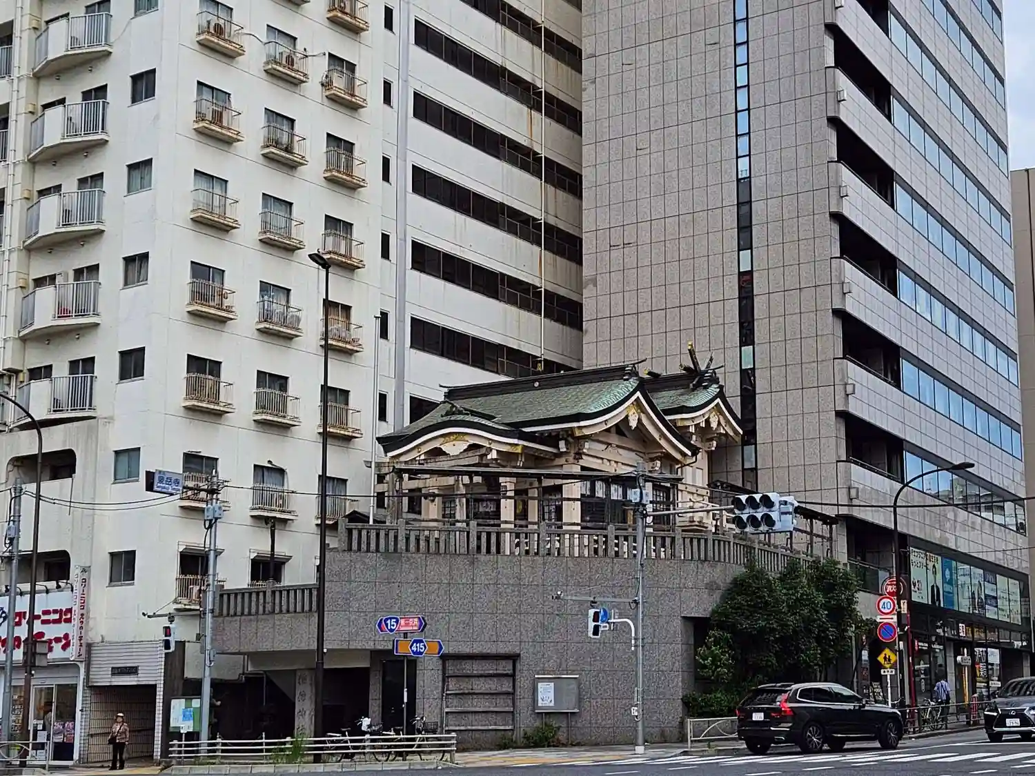 都営地下鉄浅草線、泉岳寺駅近くの交差点で、ビルの上に神社を発見し参拝しました。