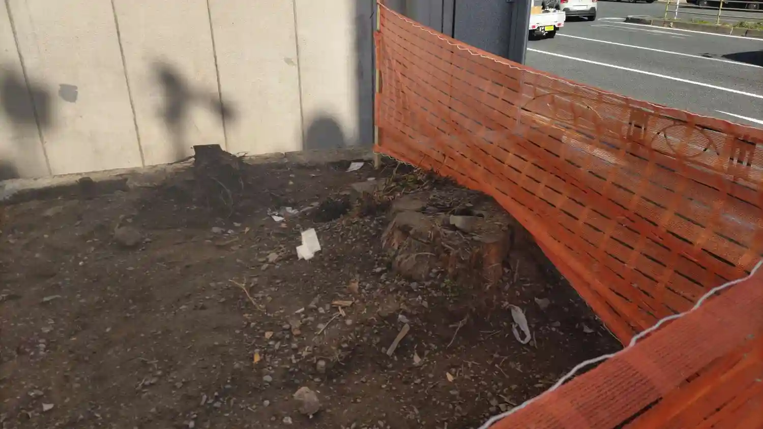 イチョウの木は切られ根のみ残されていました。