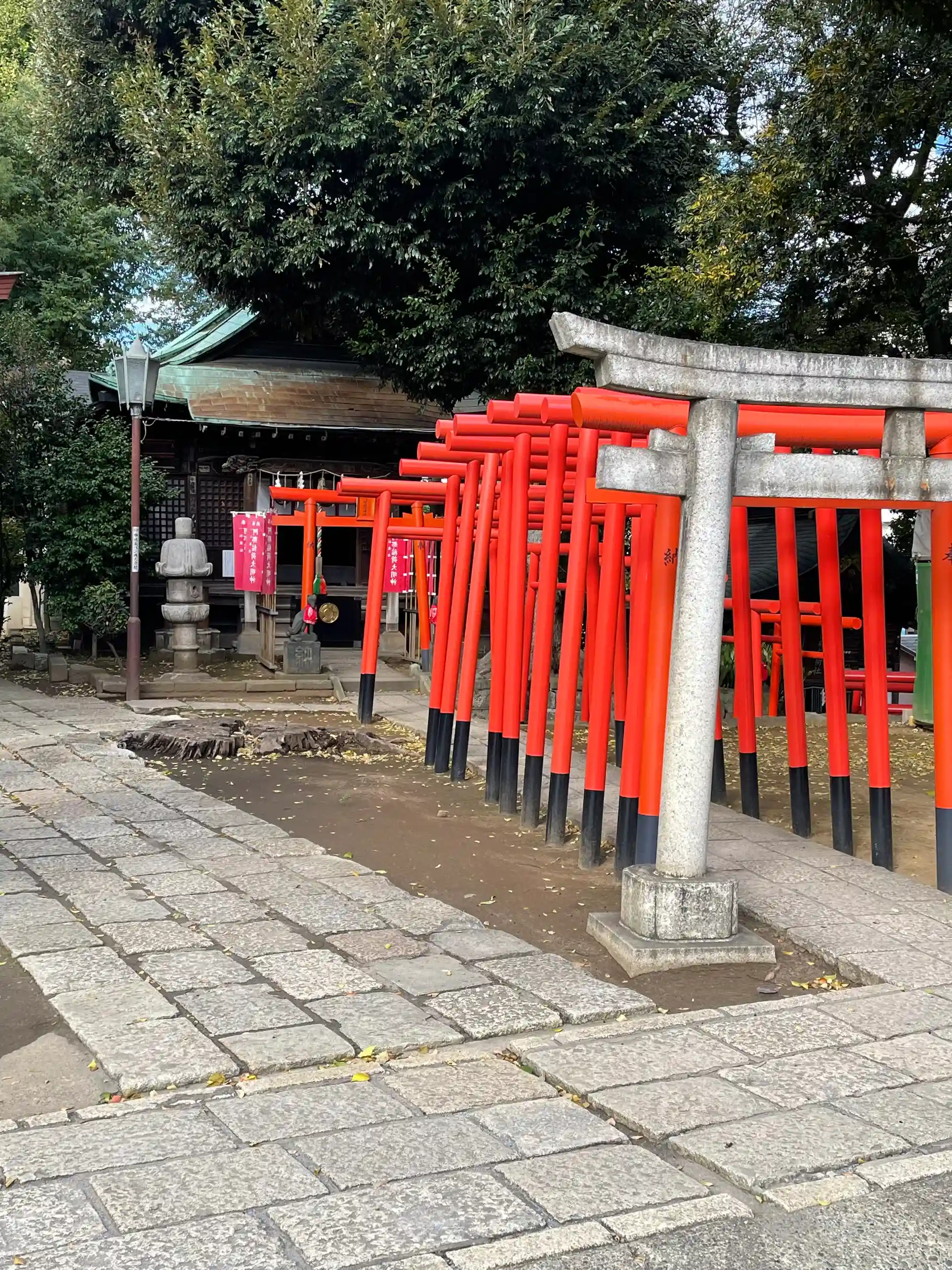 阿那稲荷神社: 拝殿の右隣に位置し、金運や商売運のご利益があるとされています。朱色の鳥居が並ぶ様子は撮影スポットとしても人気です。