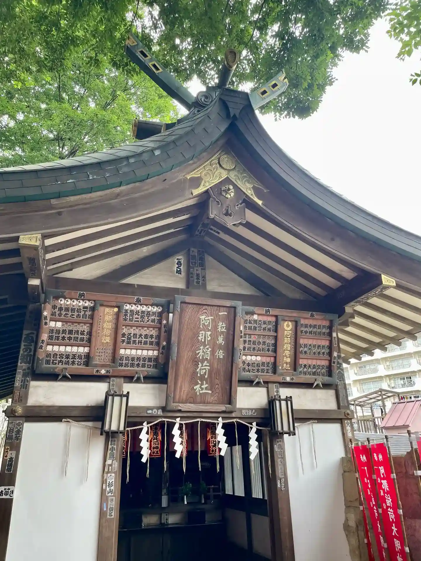 「阿那稲荷神社」は上社と下社があり、品川神社拝殿の右横の千本鳥居の先に上社の「天の恵みの霊」が祀られており、下社は階段を下りた先にあり、「地の恵みの霊」が祀られている。