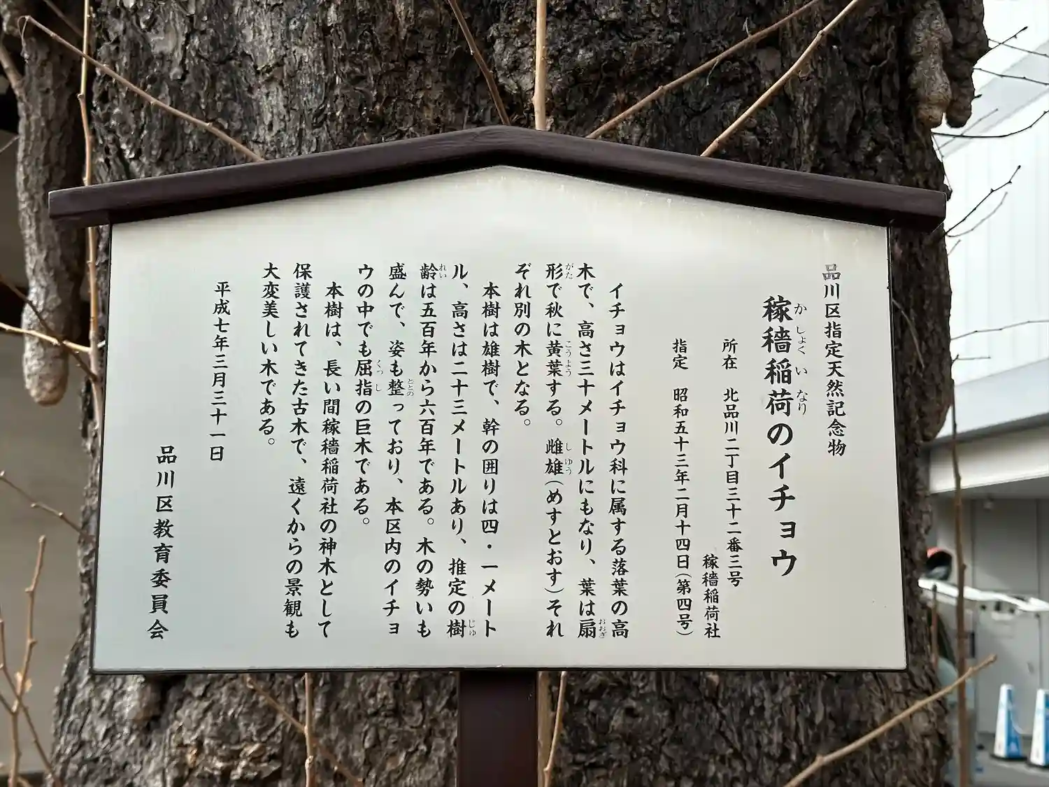 稼穡稲荷社のイチョウの説明板
