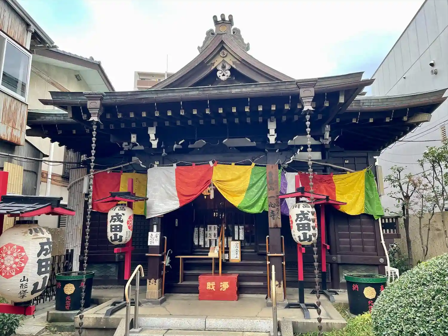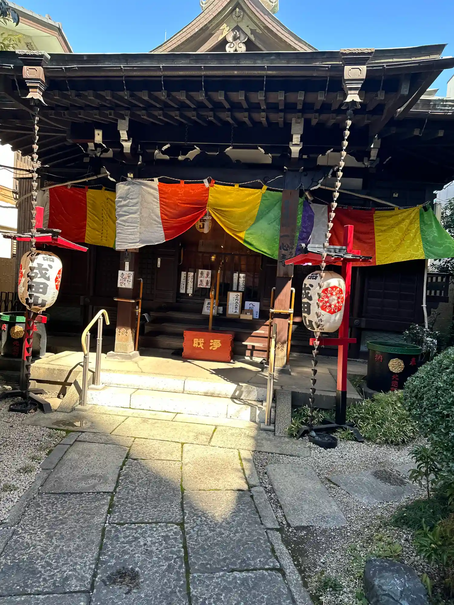 東京品川、品川成田山一心寺を参拝。開山は井伊直弼公だそうです。大きくはないお社ですが、成田山の提灯…