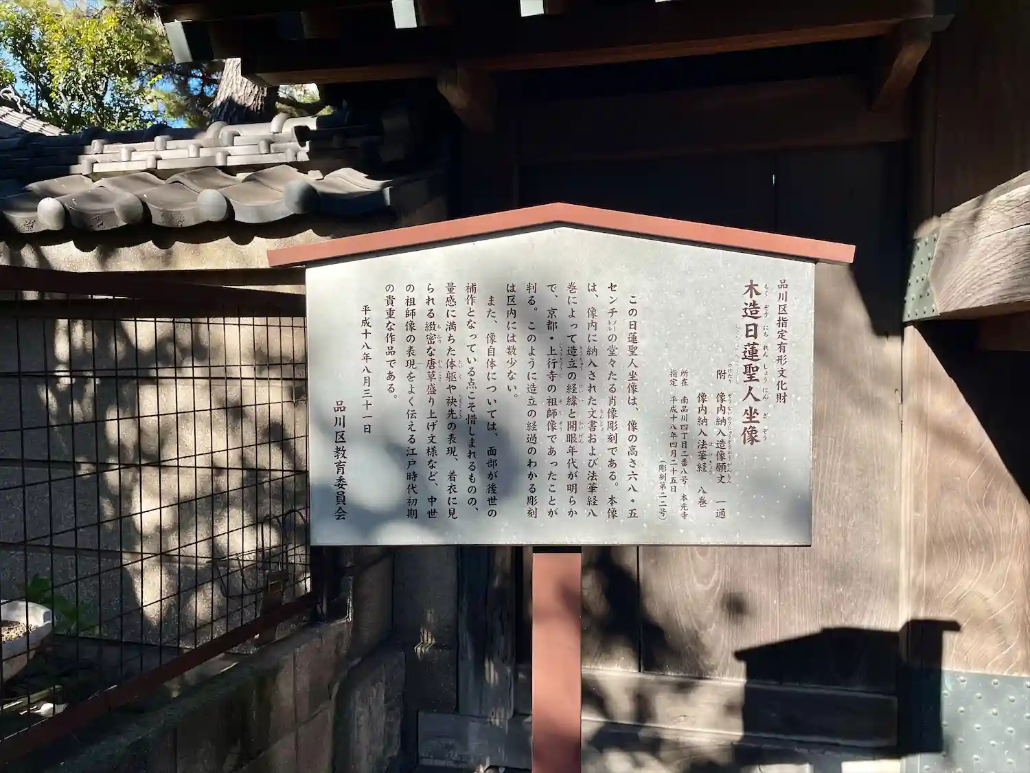 東京都品川区南品川にある単立寺院で、山号は経王山。往時は真言宗といわれ、室町時代に日什により法華宗…