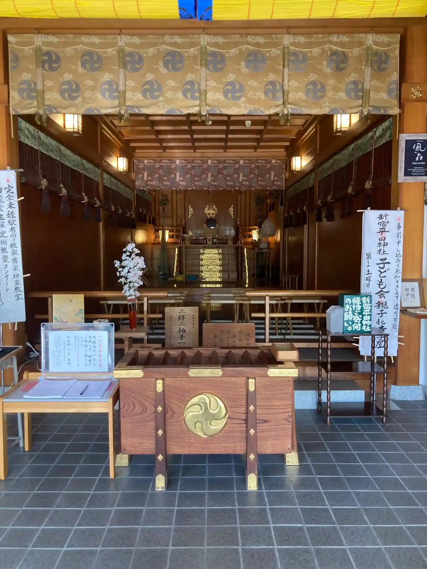一見するとマンションビル風の1階(多分神社様のビル)に社殿があり、新宿に近い都会の神社らしい外観です。社殿に入るとコンパクトながら流石に神域を感じられ、身を引き締めて参拝しました。