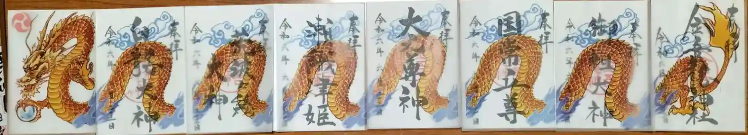 天を駆ける神馬と黄金龍が描かれた御朱印は、まぶしいくらいにピカピカ✨