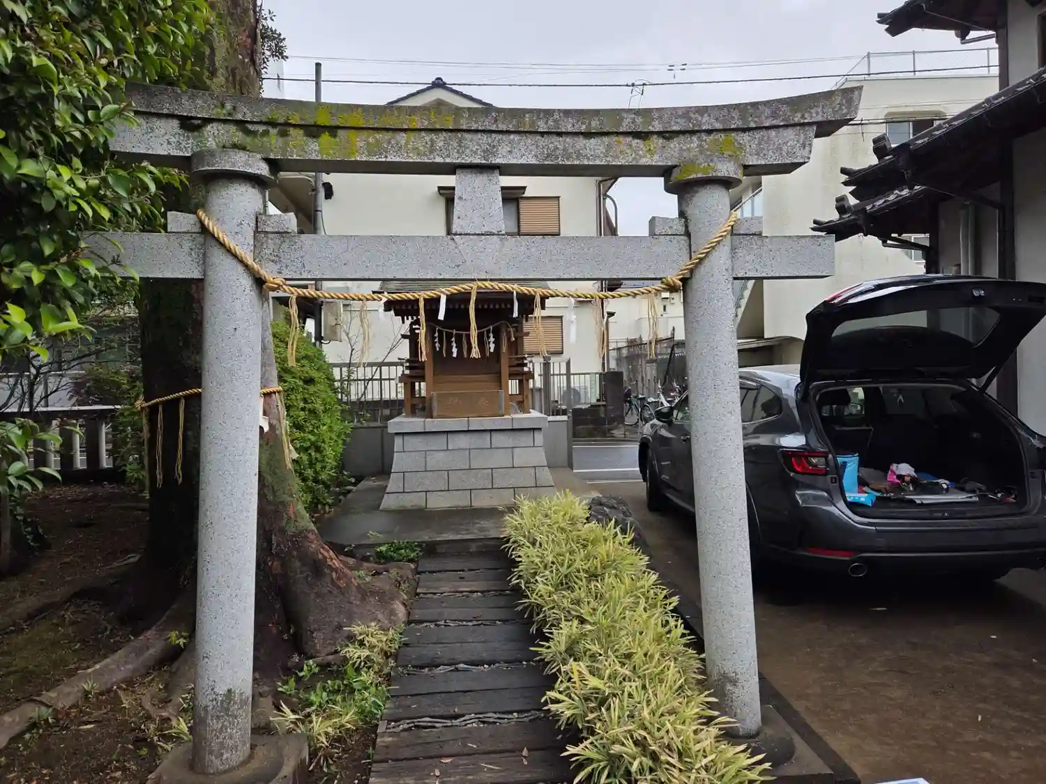 と思い出して、やや緑の濃い【鬱蒼とした】場所を探すとコンビニの少し奥のほうに神社がありました。