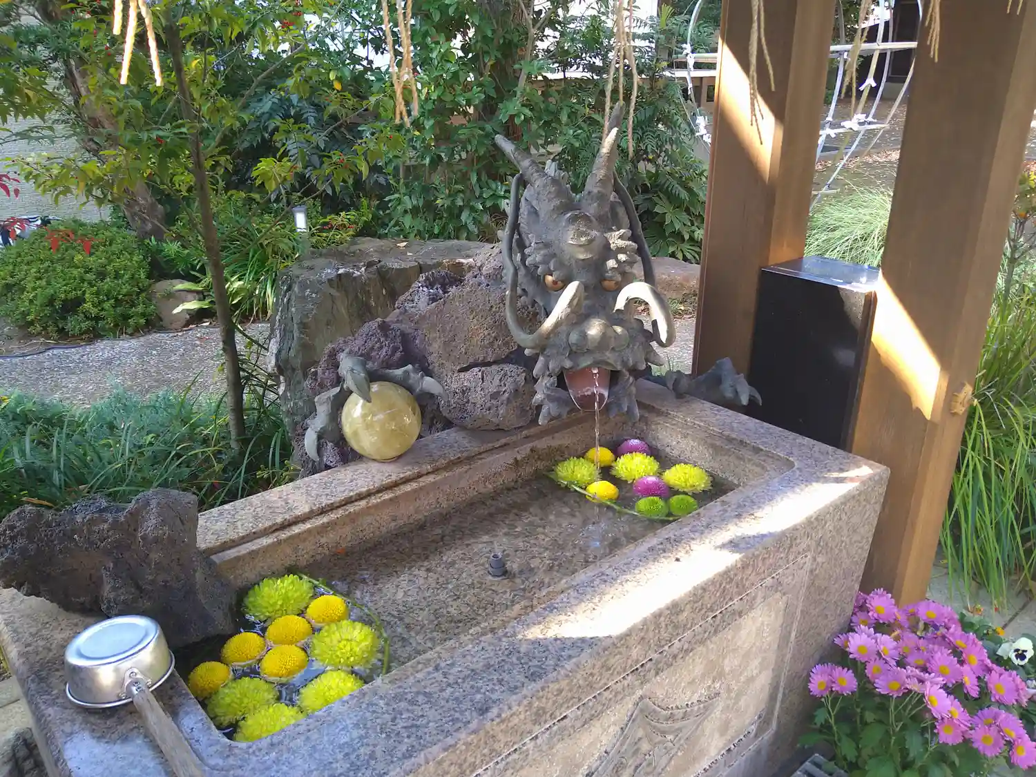 手水処です【龍が結構な大きさです。握っている玉はドラゴンボールか?】