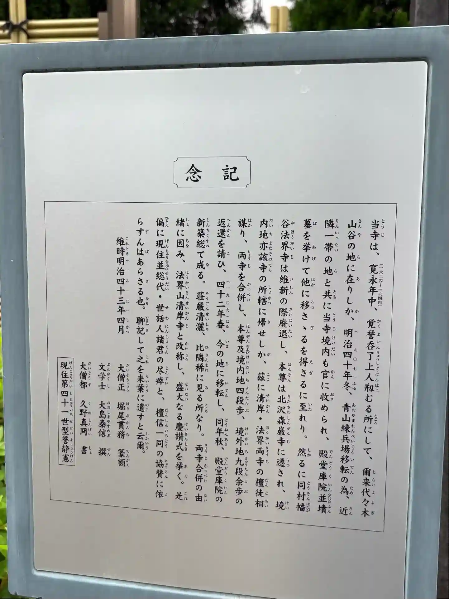 清岸寺会館入口横