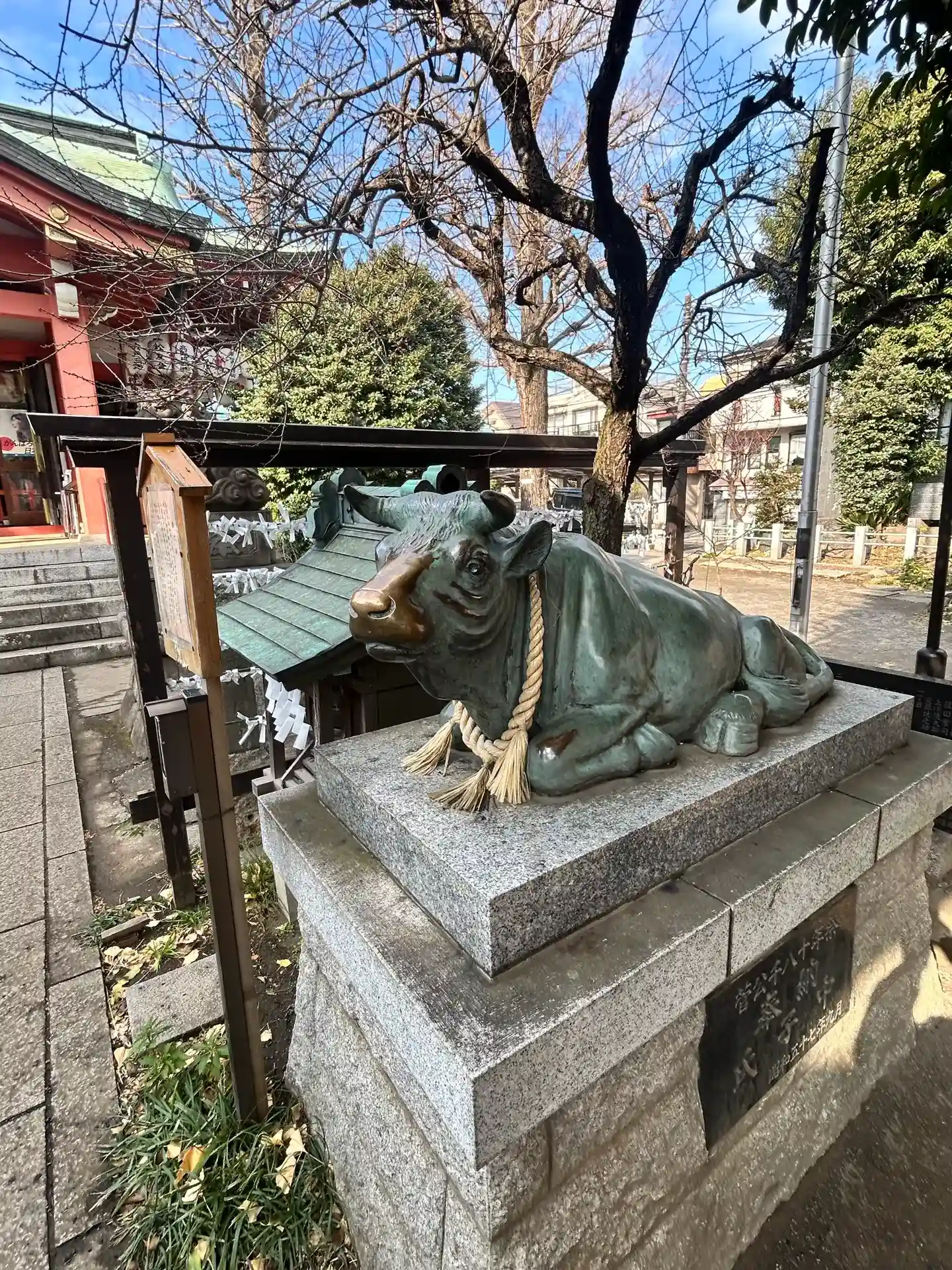 さすが天神さま。撫で牛がいました。コロナ禍で撫でられない牛も他の神社さんにはいましたが、こちらはガッツリ撫でられます♪