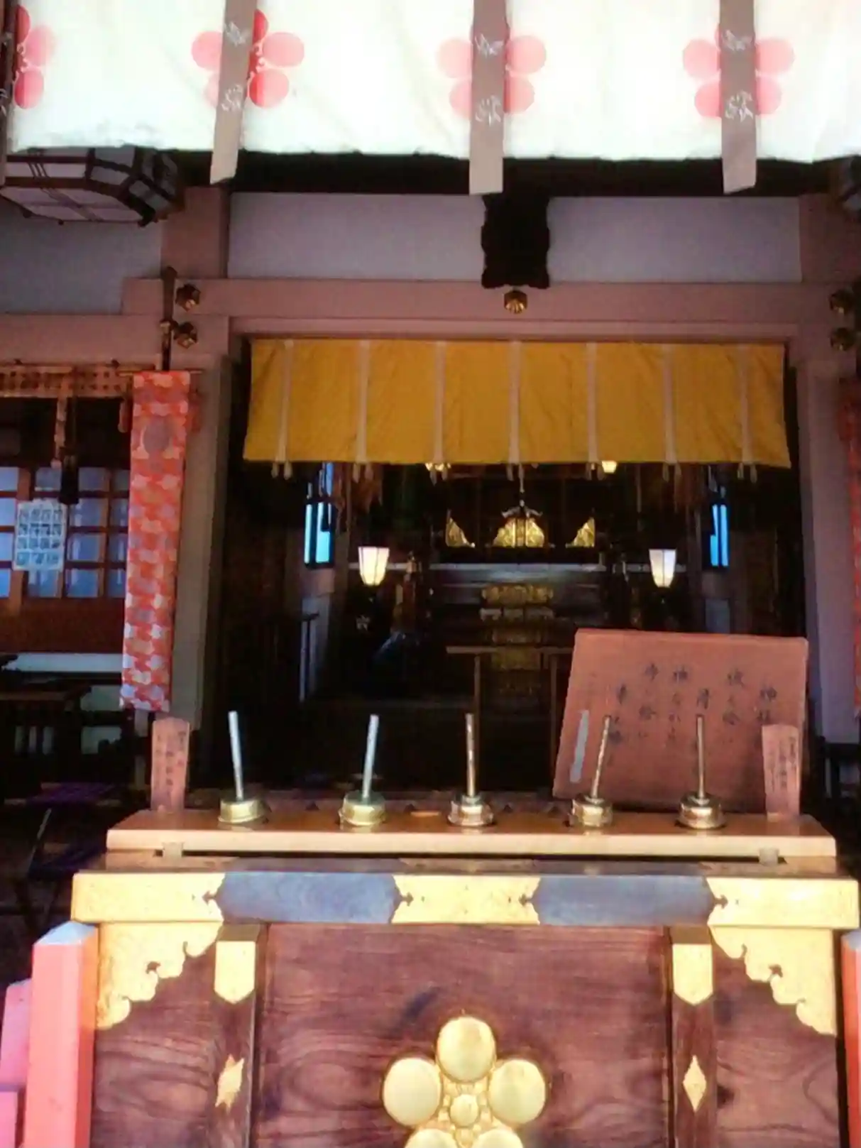 上から吊り下がっている鈴はありませんが、代わりに賽銭箱の上に小さな鈴が置いてあります。珍しいと思って、神職さんに聞いてみたら、コロナは関係なく、ずっとこういう鈴なんだそうです。