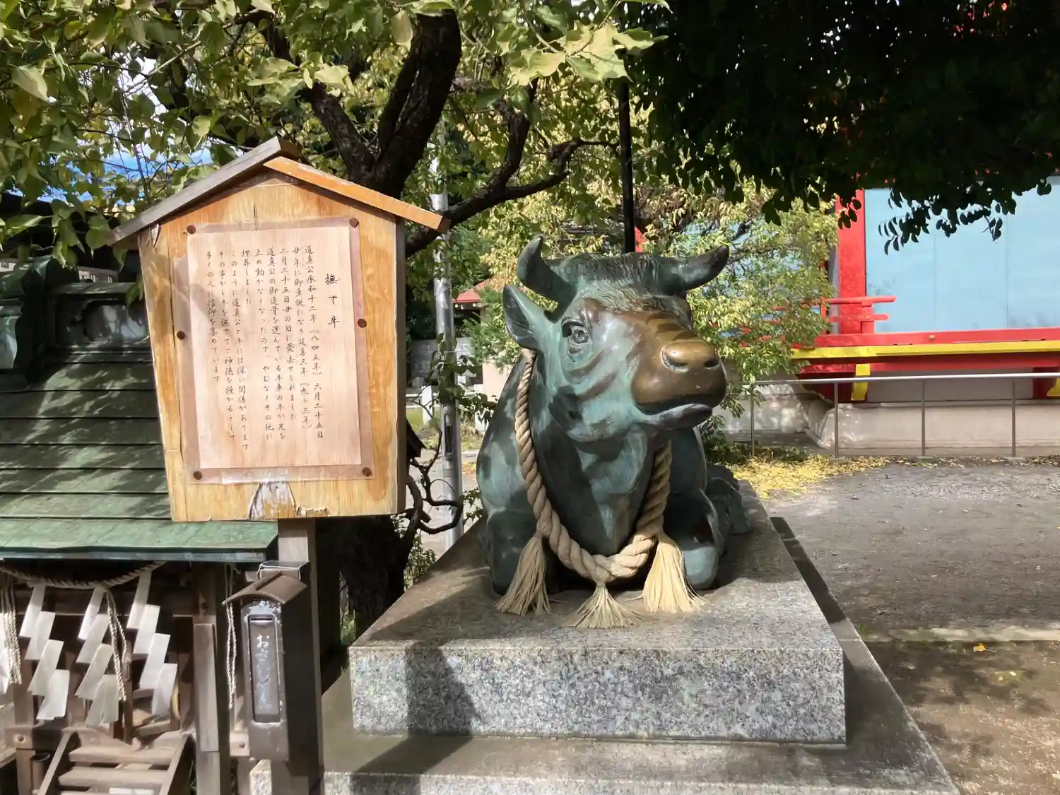 さすが天神さま。撫で牛がいました。コロナ禍で撫でられない牛も他の神社さんにはいましたが、こちらはガッツリ撫でられます♪