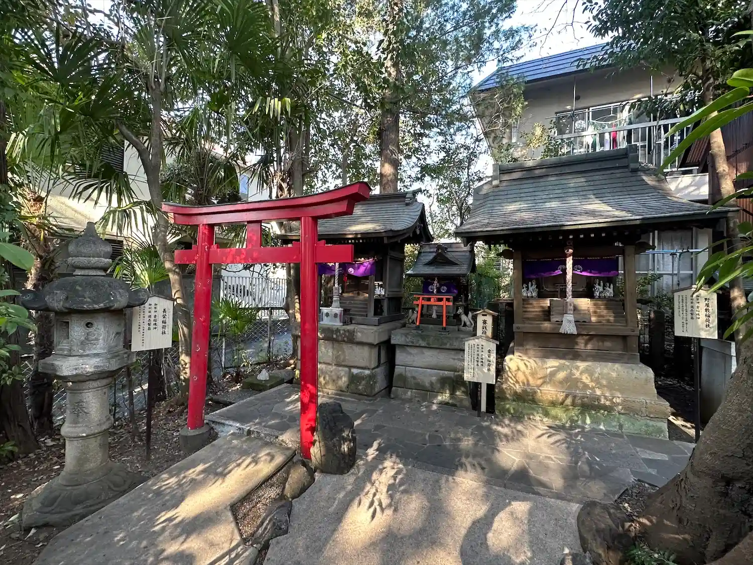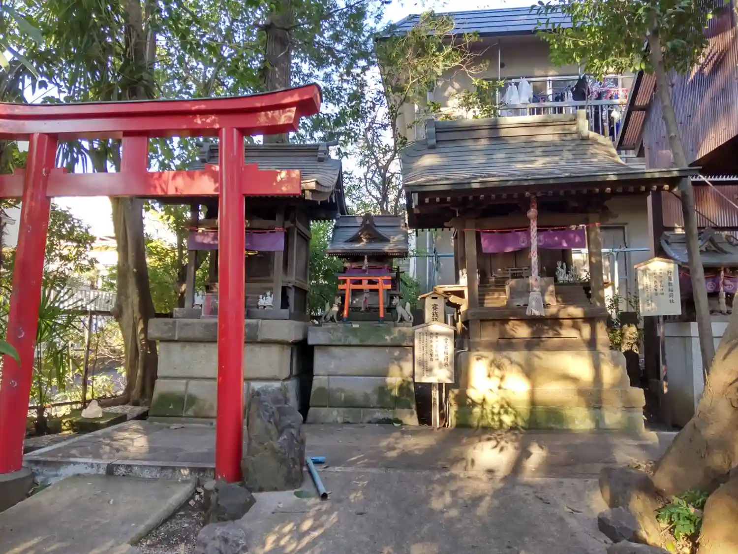 右から、野屋敷稲荷社、愛宕稲荷社、長栄稲荷社