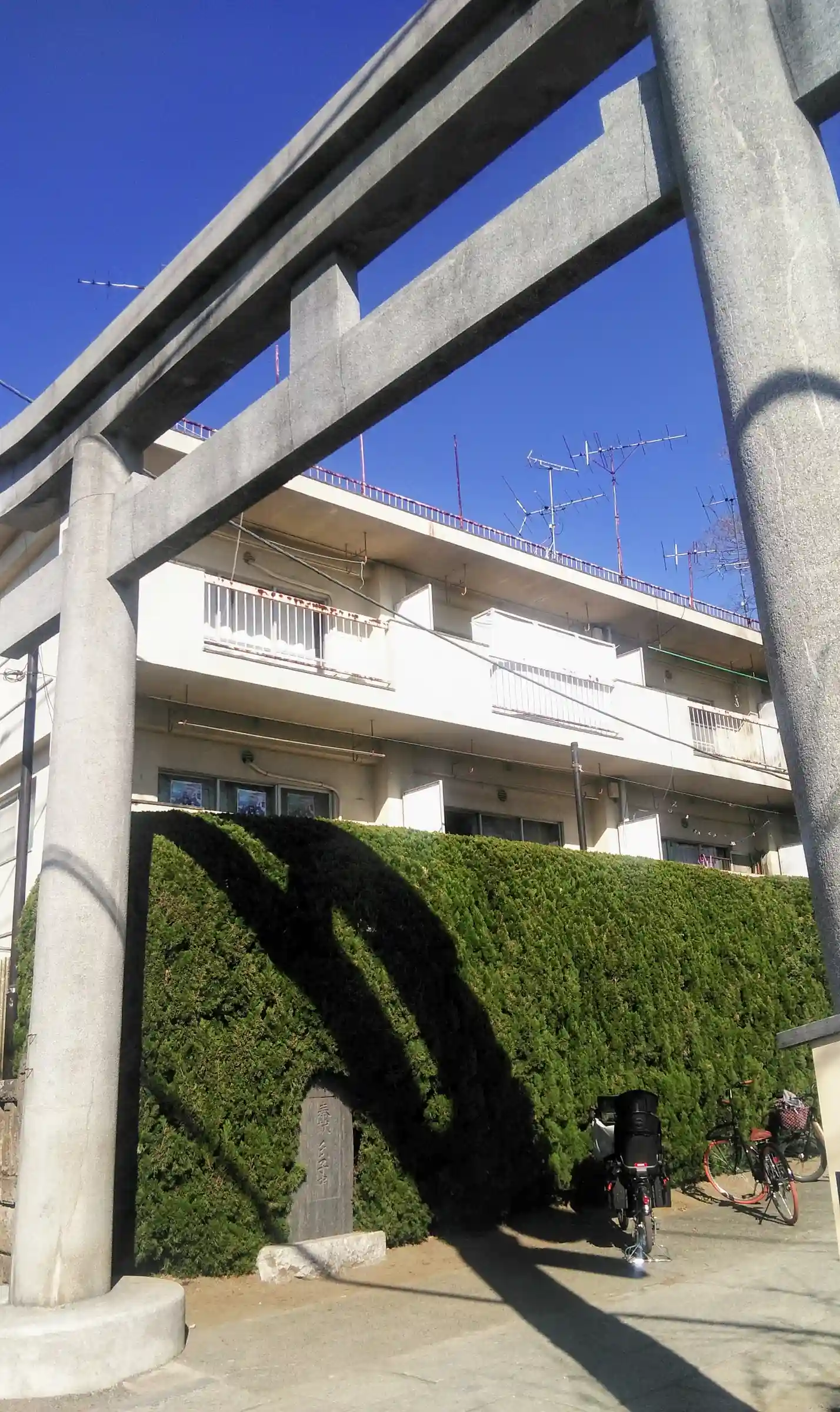 参道には自転車がずらり。公園利用者のものです