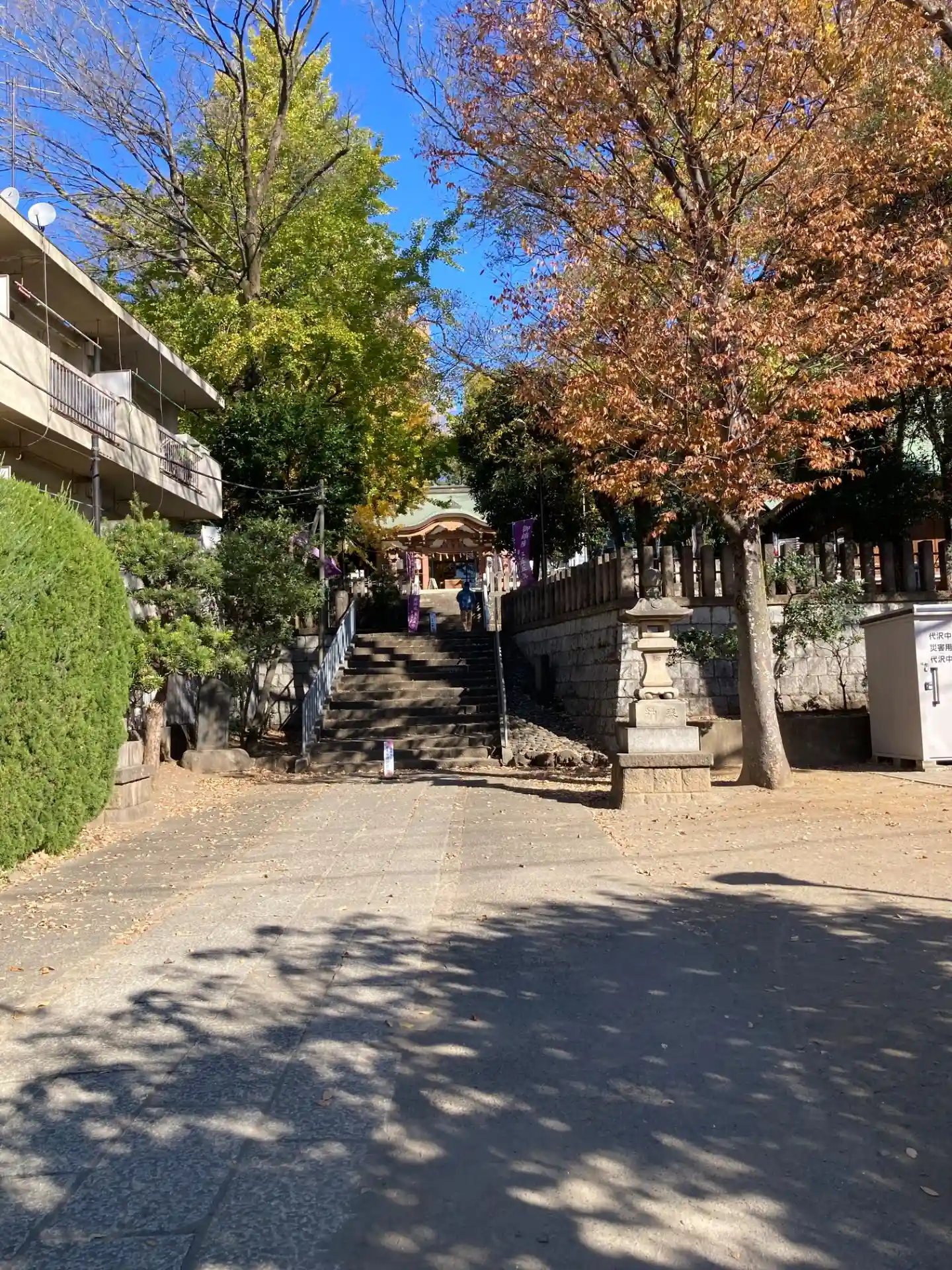 鳥居をくぐって階段を上がる。撮影位置の右側は児童公園。
