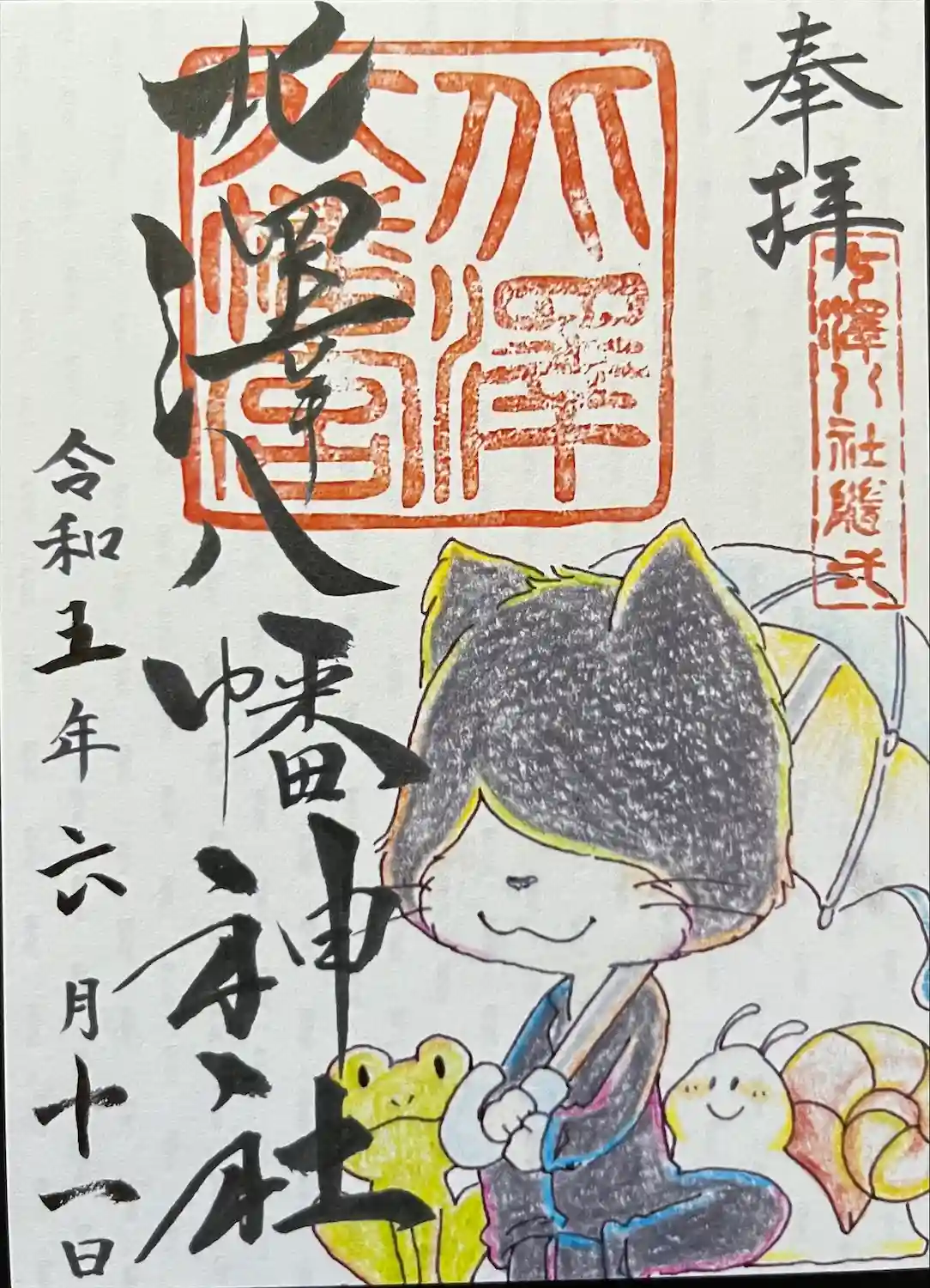 限定御朱印で緑色の可愛い御朱印です。