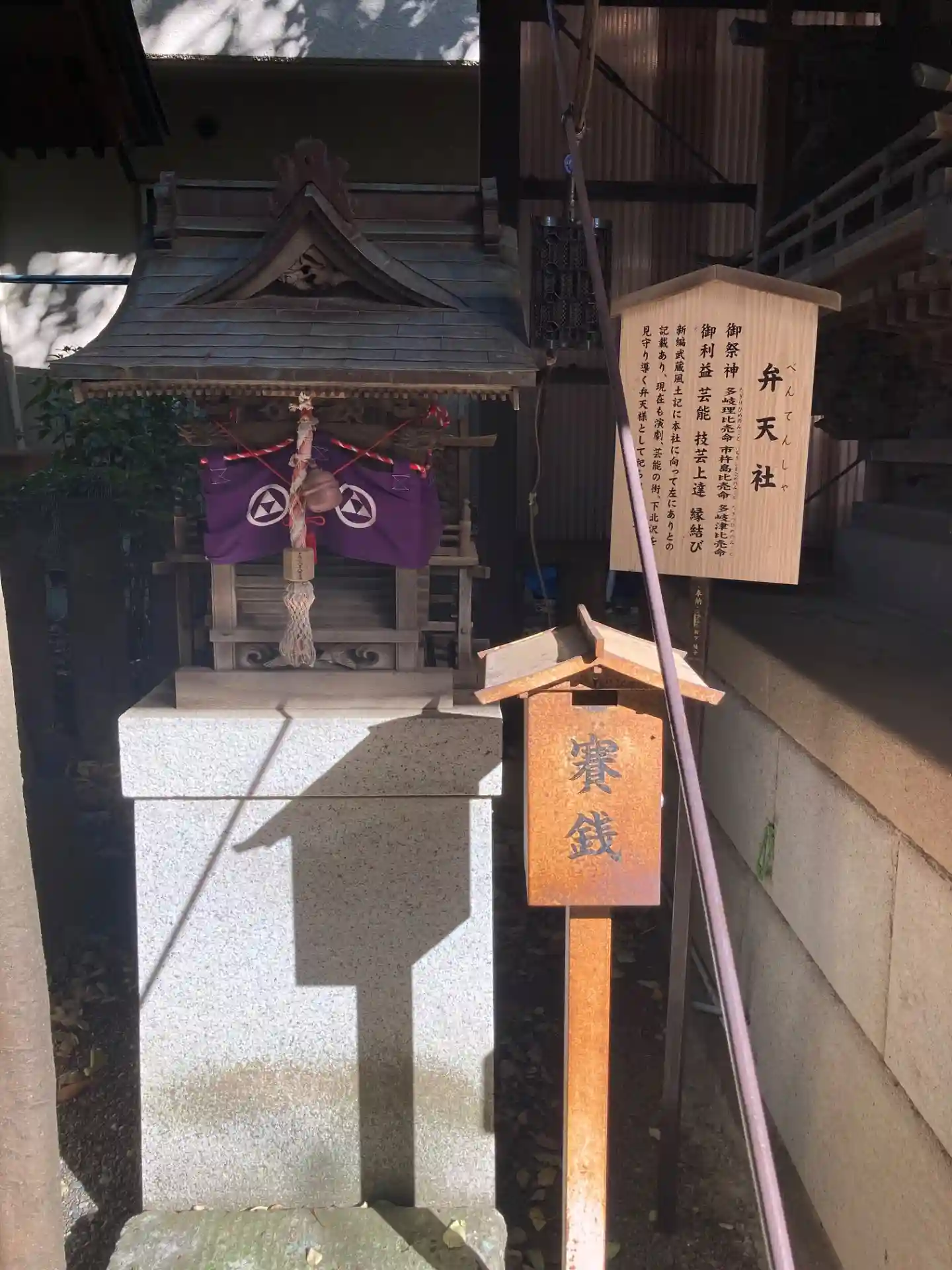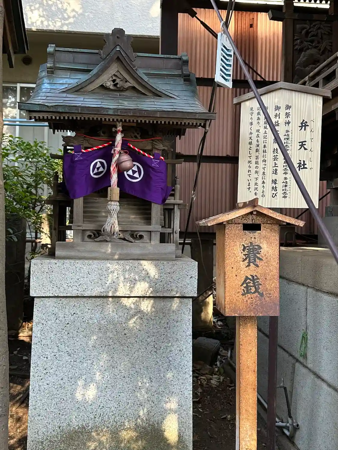 新編武蔵風土記に本社に向かって左にありとの記載あり、現在も演劇•芸能の街、下北沢を見守り導く弁天様として祀られています。