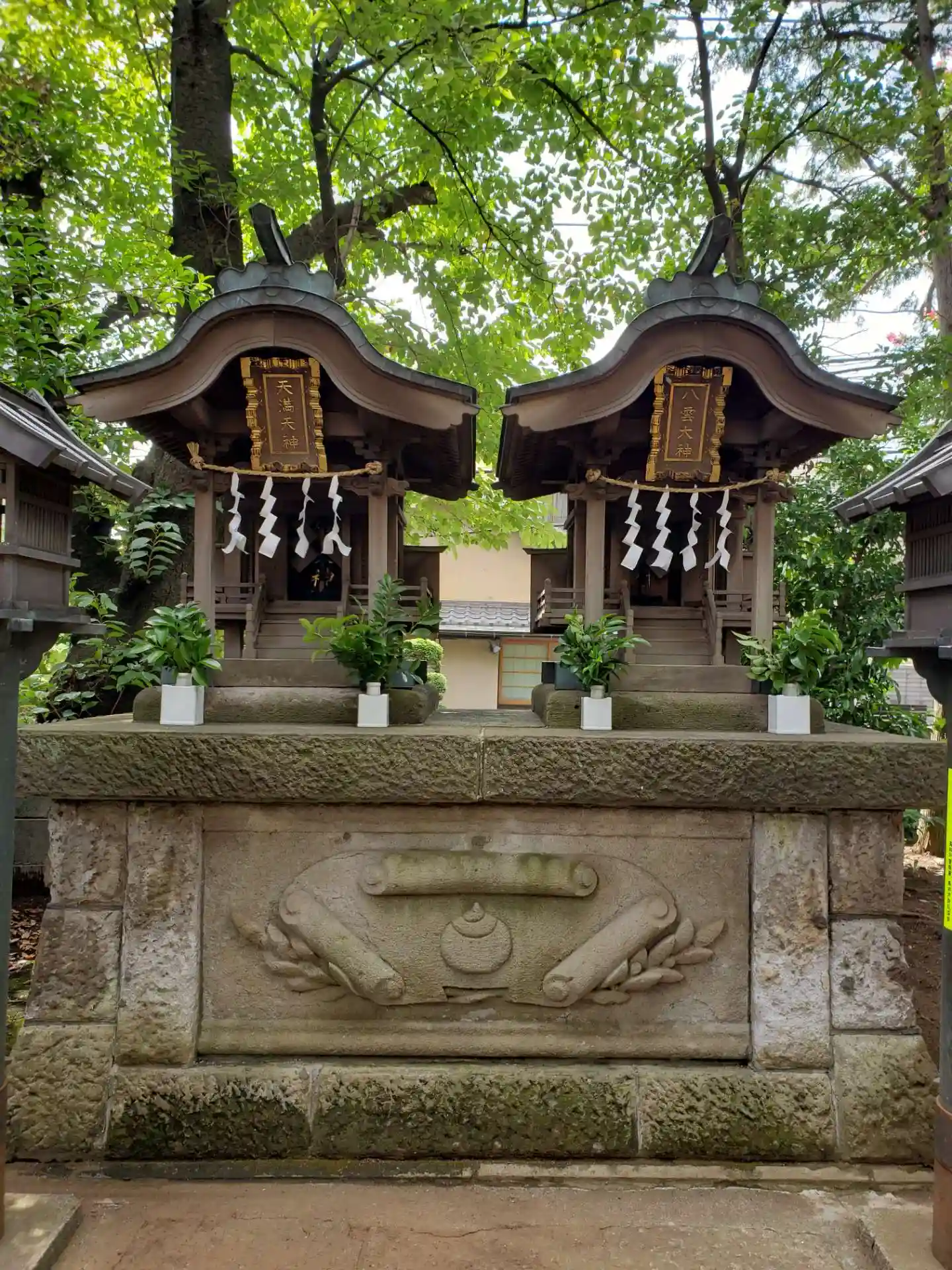 左手に、八雲大神、天満天神が祀られていて、一番最初の鳥居の手前右手には、庚申様御祭神、猿田彦大神が祀られています。