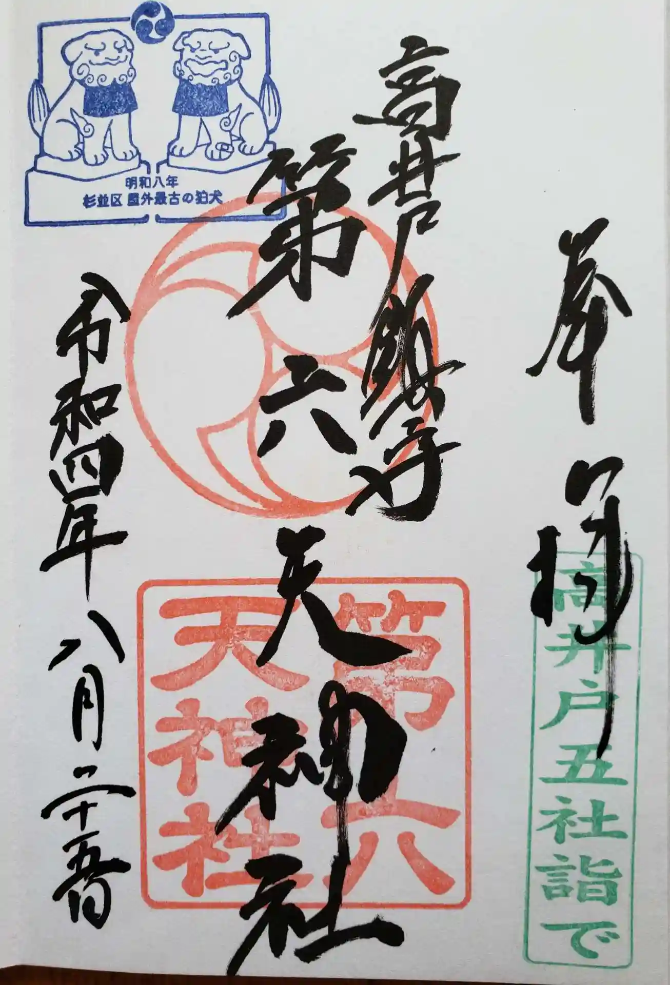 高井戸五社詣限定御朱印です。