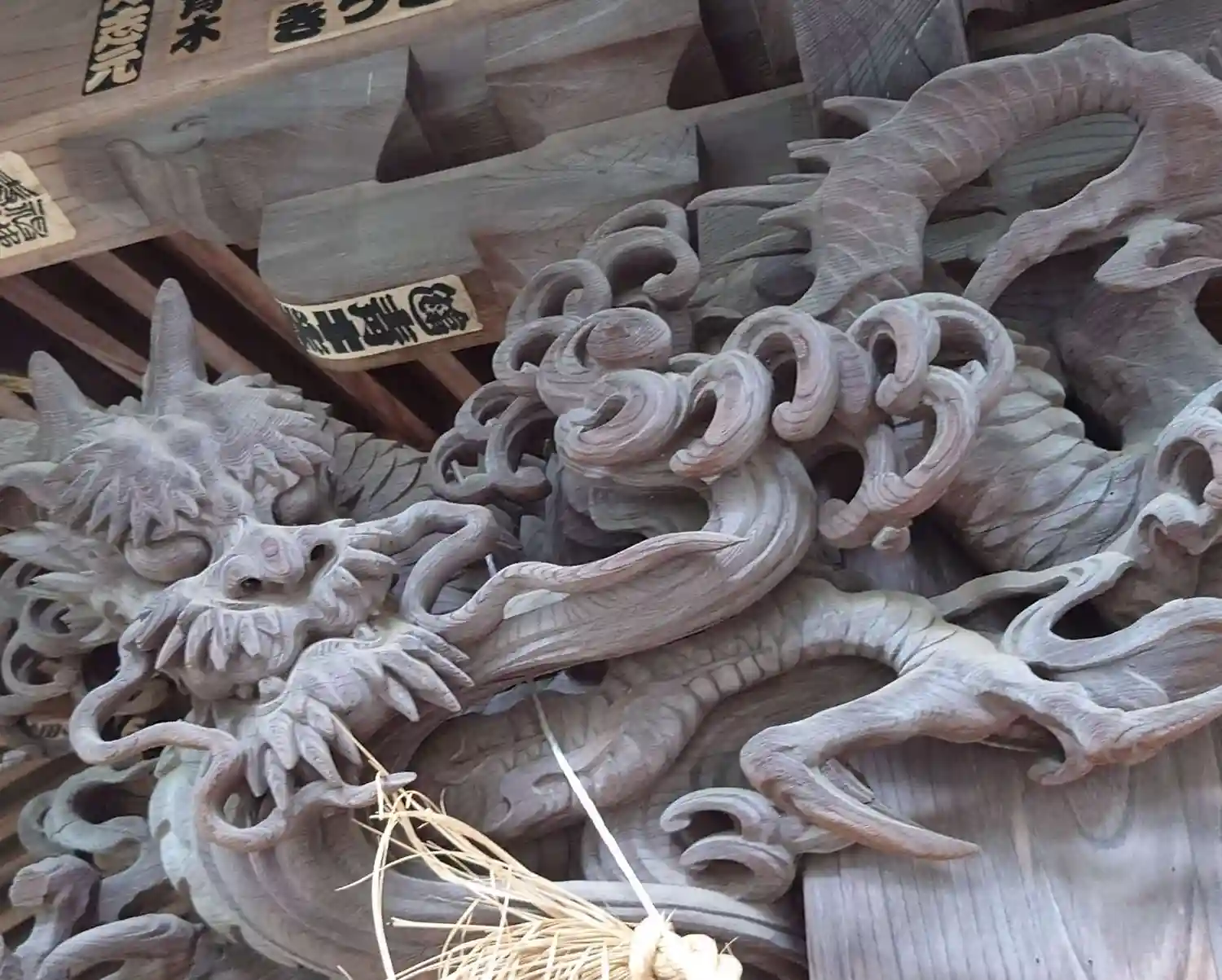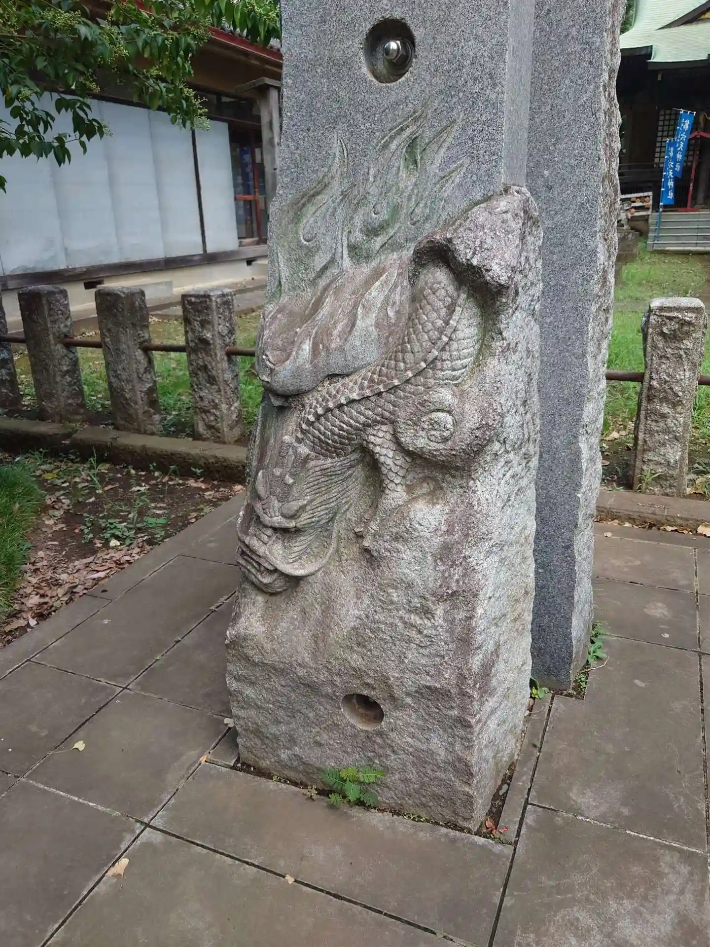 彫刻が目を惹く社殿や石柱、創建など由緒の詳細が不明なのが惜しい…色…