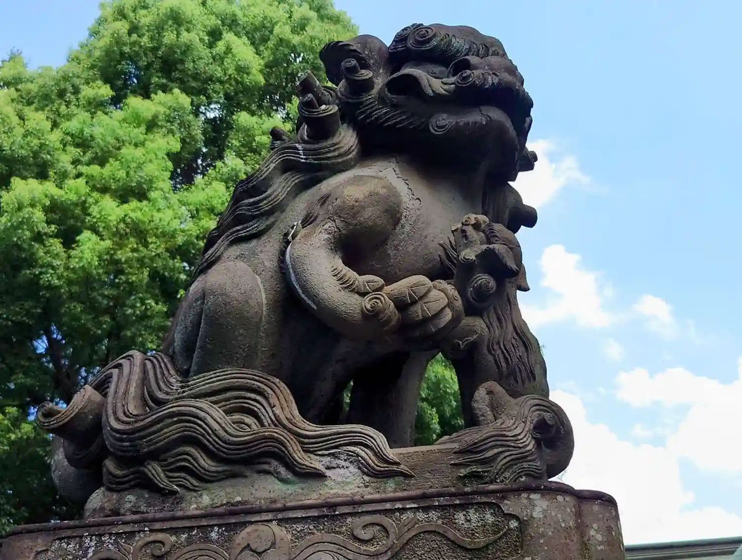 貫禄の吽、台座の彫刻もいい👍