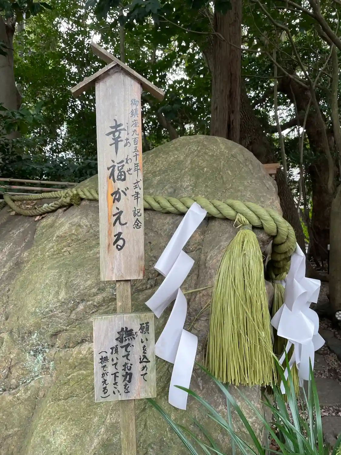 『幸福がえる』カエルの形をした大きな石。撫でると願いが叶うそう。
