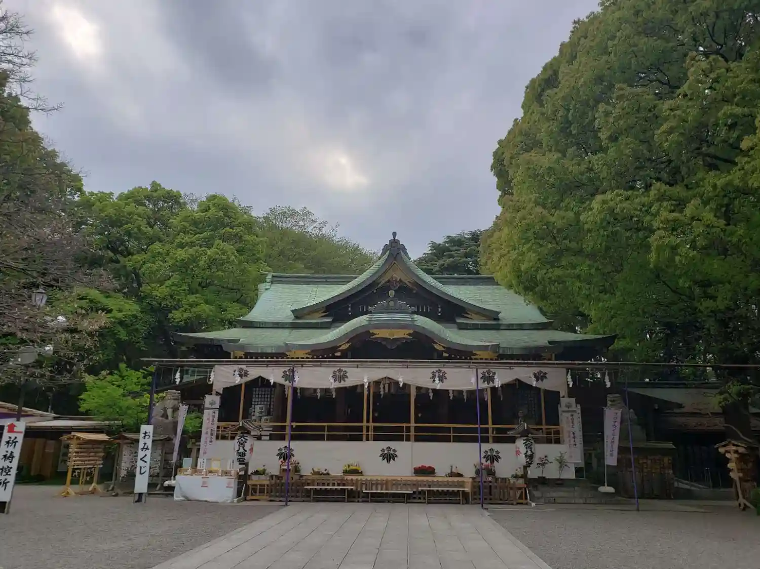 本殿前に、お正月のような賽銭箱と、参拝者のための雨よけの庇が組まれていました。(公式発表はされてないと思いますが、関東ももうとっくに梅雨入りしてると思います。)