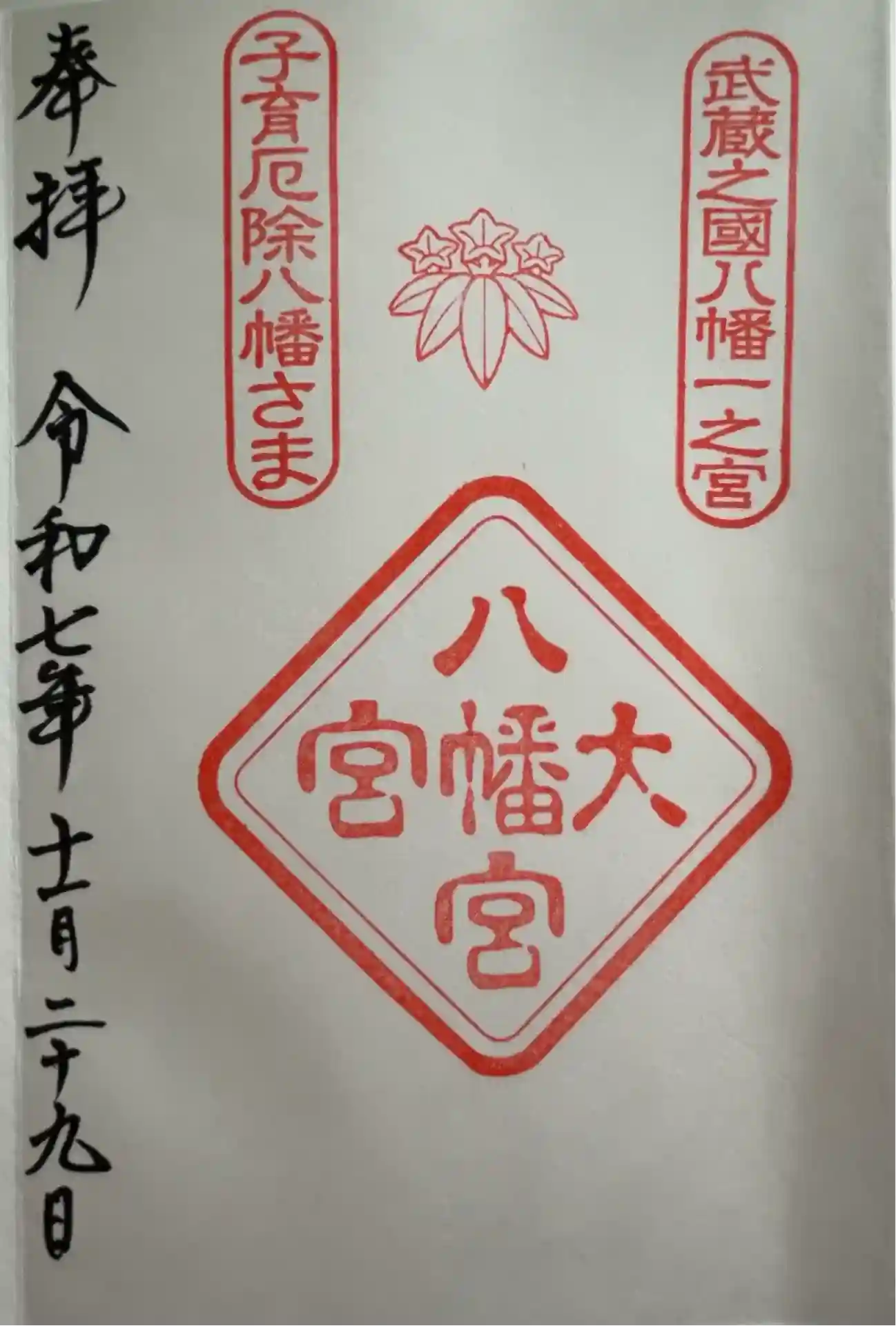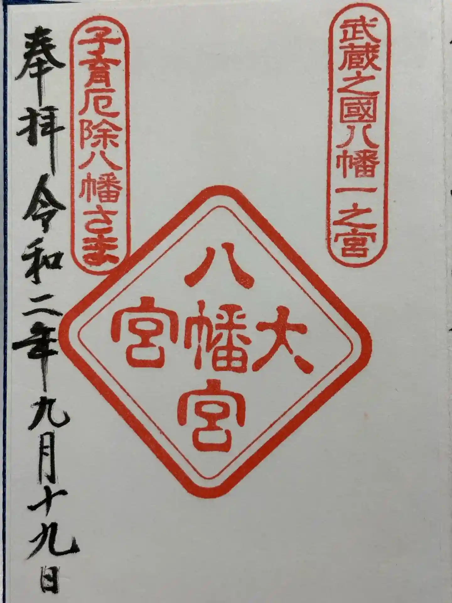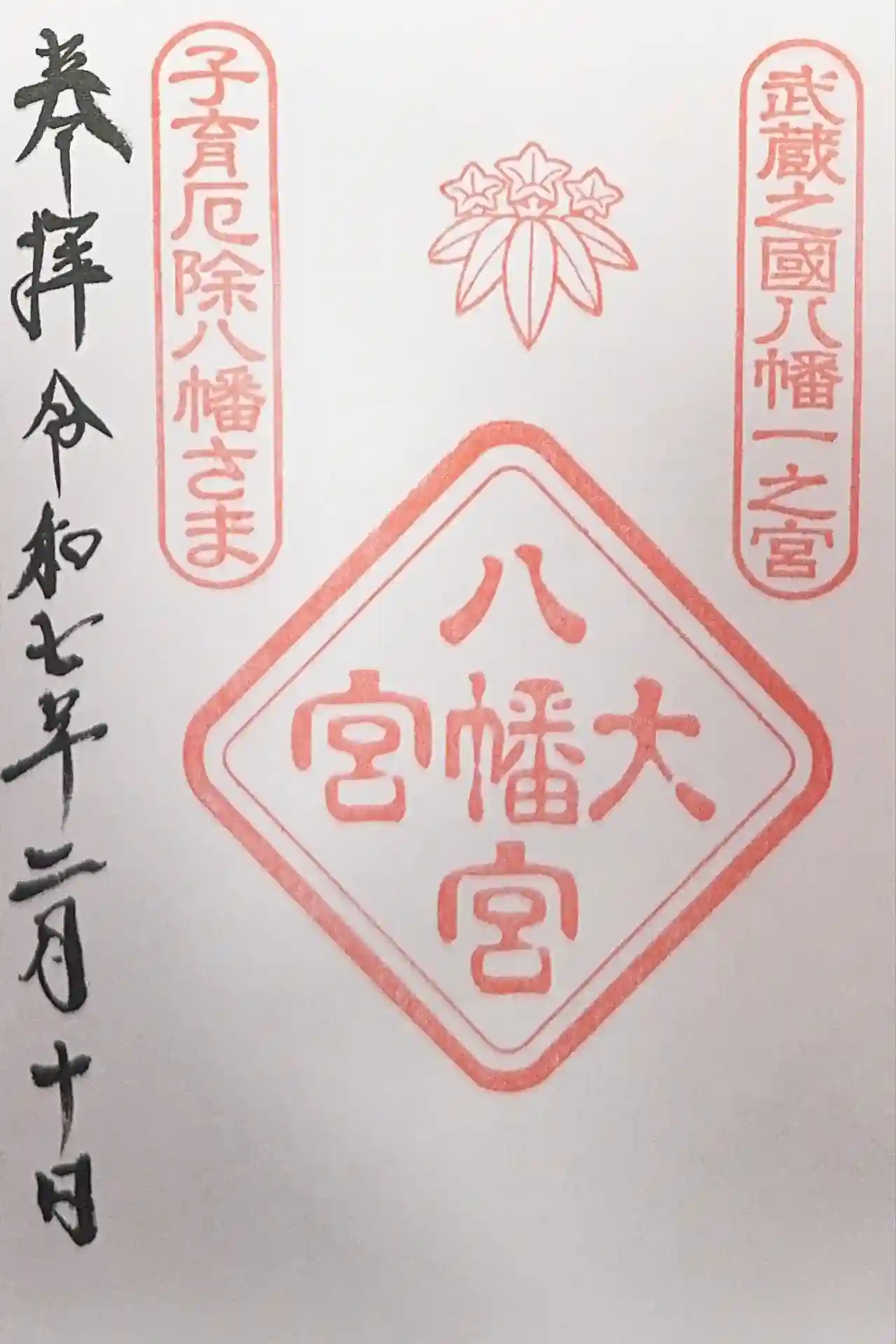 1063年、石清水八幡宮を勧請。今回で武蔵国三大宮の参拝をコンプリート。武蔵国八幡一之宮とも。