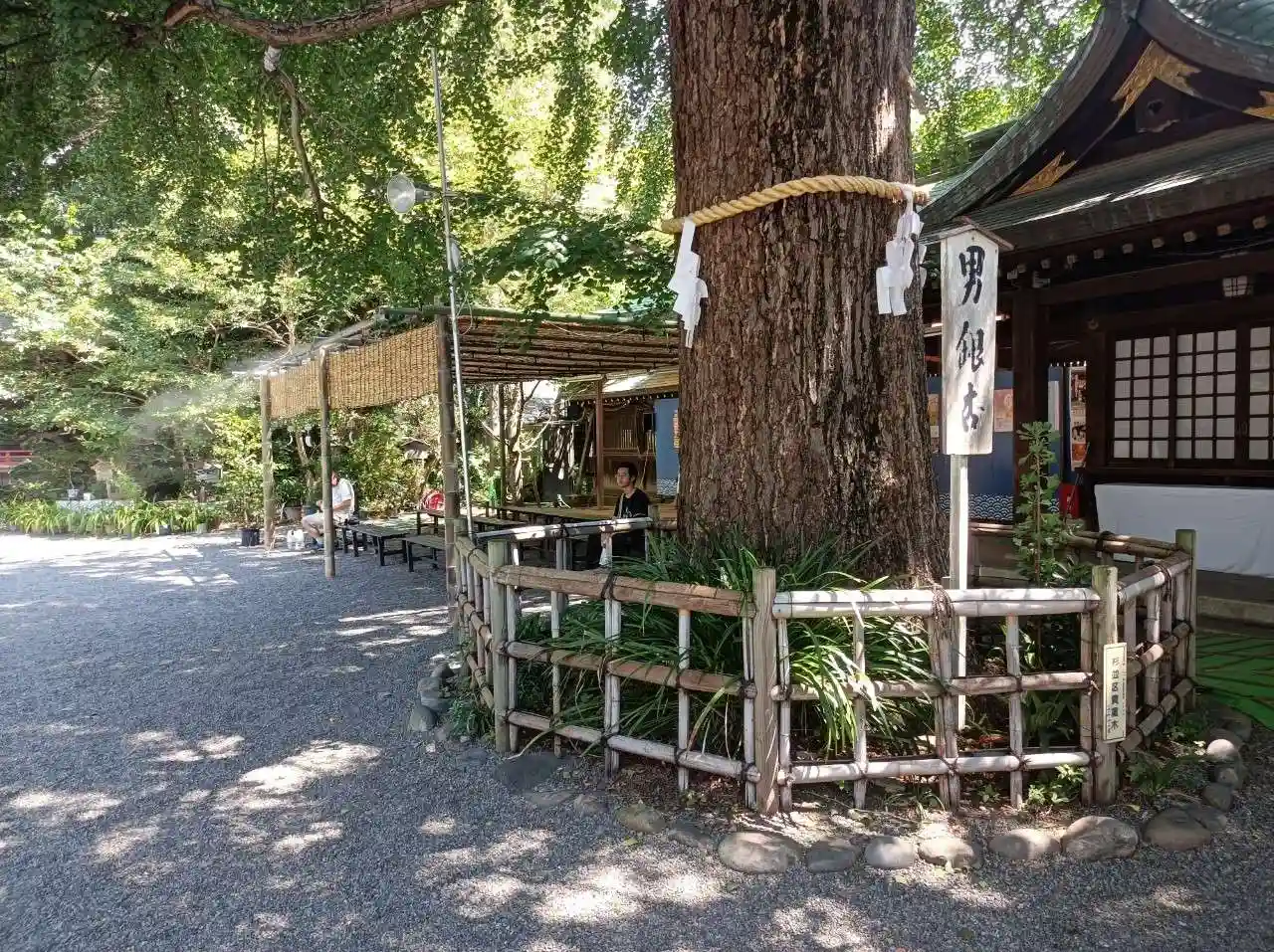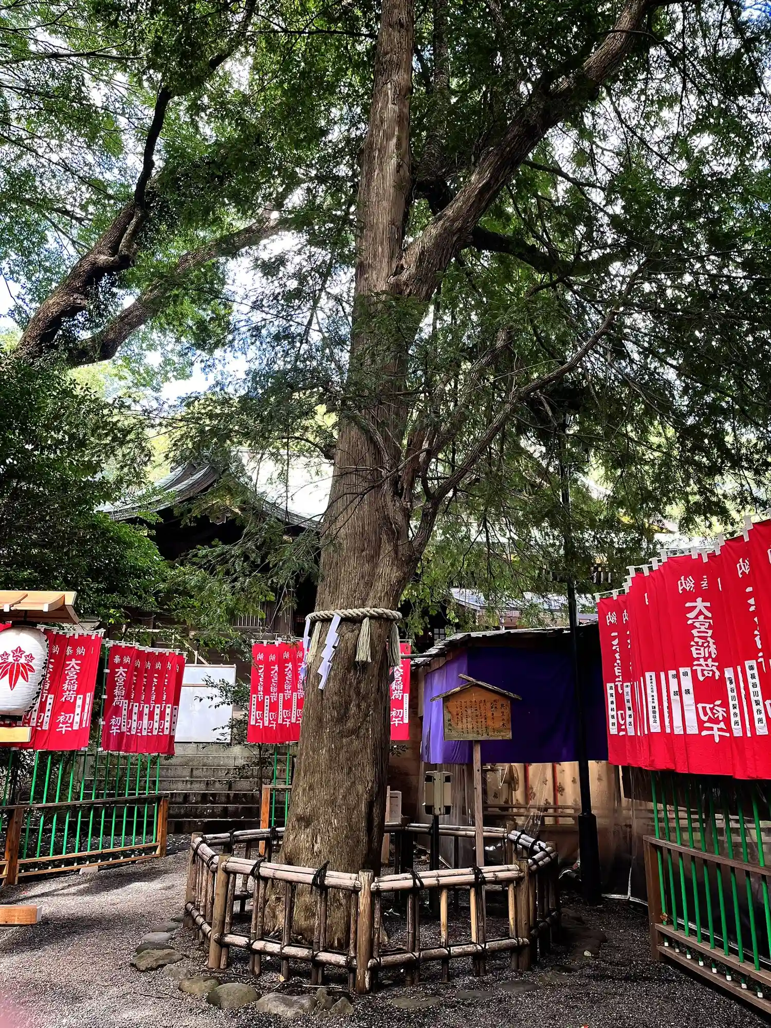 稲荷社の目の前にある御神木。ここにいた時、本殿からご祈祷が聴こえてきて、ありがたかったです。後で本殿前に戻り、初宮参りのご祈祷だったのだと分かりました。雅楽の奉納があったのか、笛の音と鈴の音と、唄が聴こえてきて、その音にも癒されました。