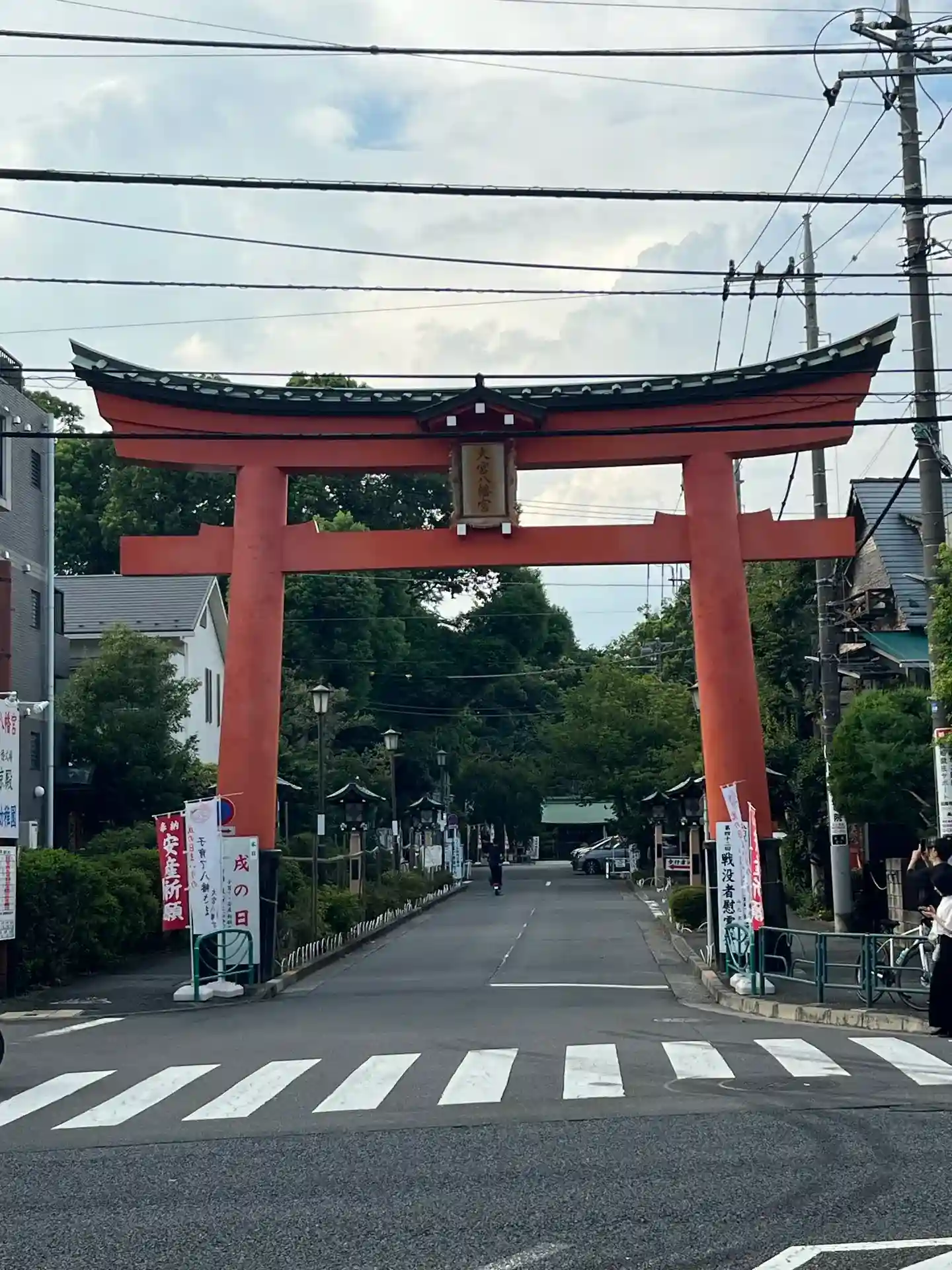 初めての街並みに一人旅気分。ワクワクしながら歩いていくと、大きな鳥居が見えてきました。