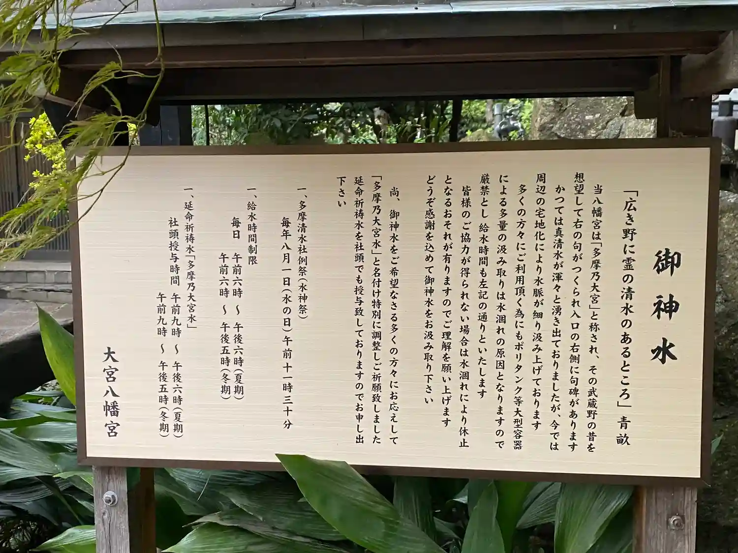 参道右手にある御神水。多摩清水社。