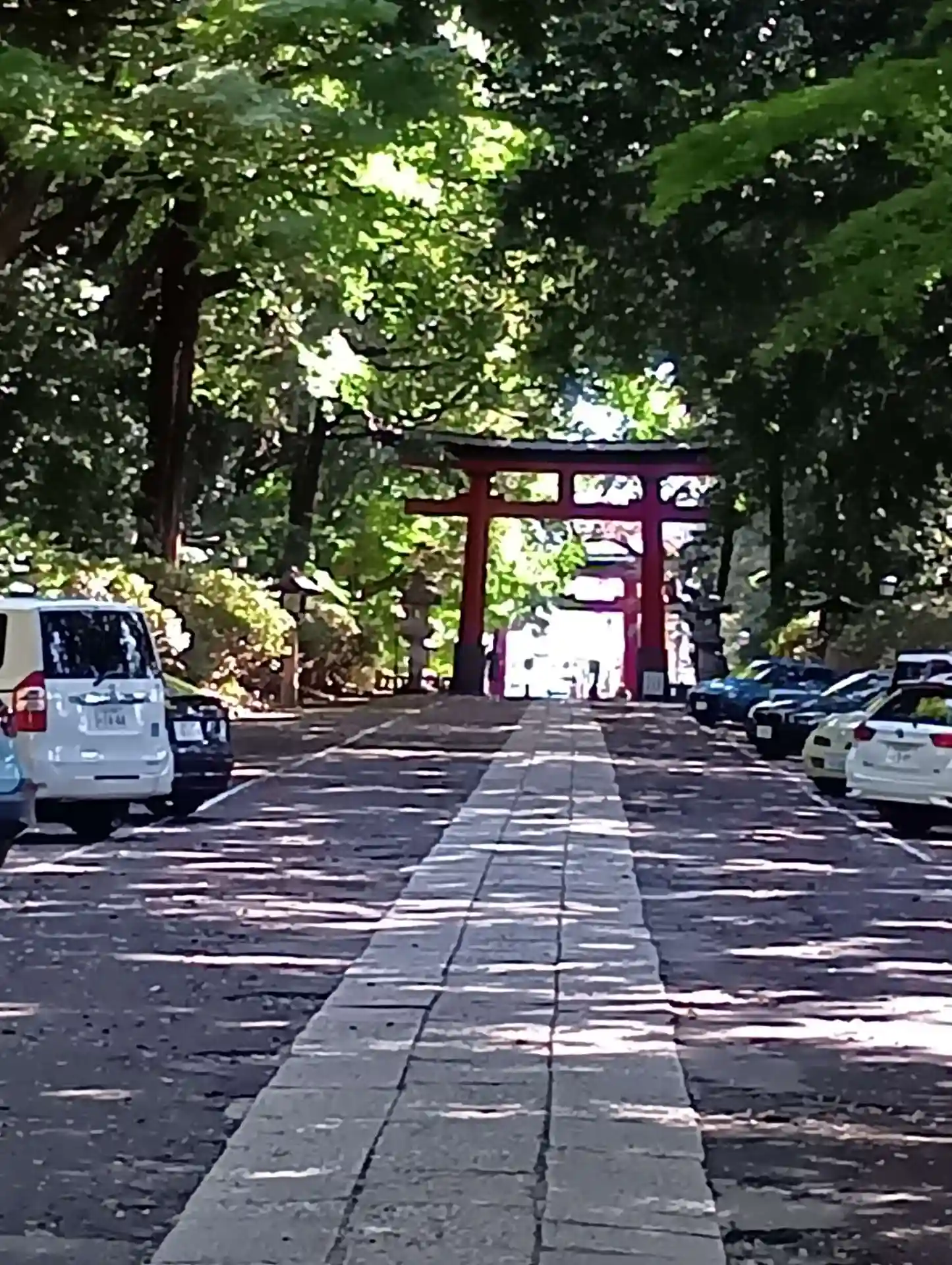 神社左手、本殿よりから入って、参道に駐車出来ます。