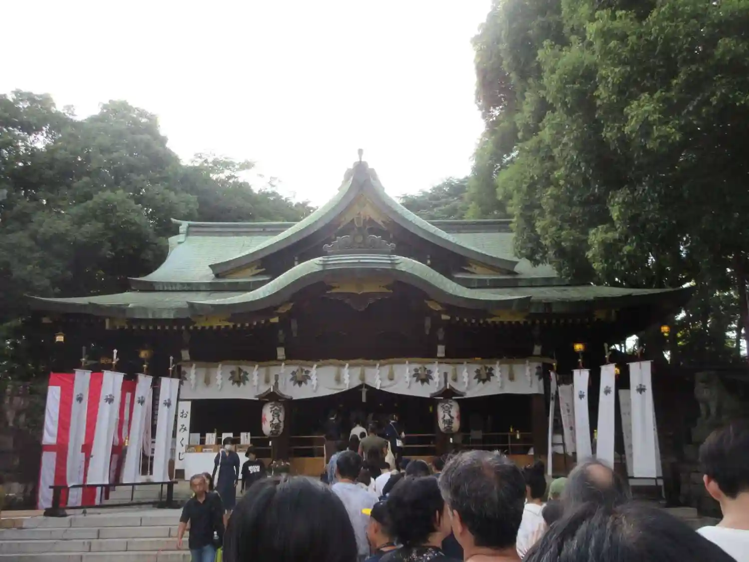 御本殿参拝のための行列は、御神門の外まで続いていました。ひ〜!